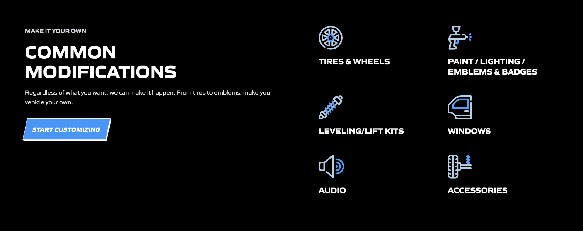 Coasts Customs is your 1 stop professional custom shop that specializes in the following for All makes and models: