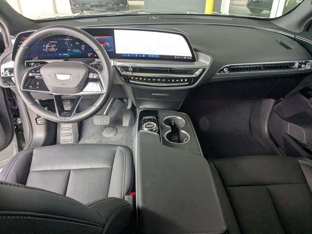 - LYRIQ's choreography starts at the front with the Cadillac emblem, radiates across the front grille, and continues with the headlamps. The lighting next moves to the side door handles, and dramatically concludes at the rear taillamps