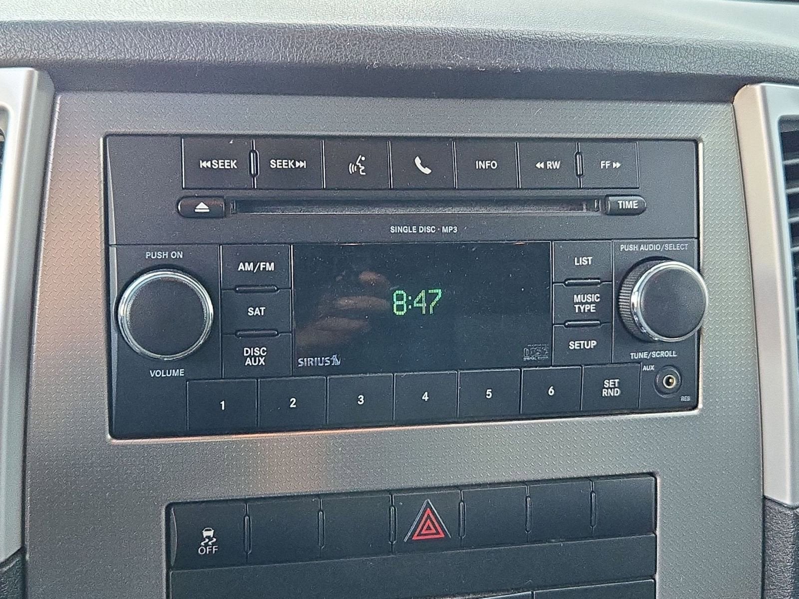 Equipped with Quick Order Package 26E, 17 x 7.5 Aluminum Sparkle Silver Wheels, 3.07 Axle Ratio, 4-Wheel Disc Brakes, 6 Speakers, ABS brakes, Air Conditioning, Alloy wheels, AM/FM radio: SIRIUS, Audio Jack Input for Mobile Devices, Bodyside moldings, Brake assist, Bumpers: body-color, CD player, Cloth Low-Back Bucket Seats, Compass, Delay-off headlights, Driver door bin, Driver vanity mirror, Dual front impact airbags, Electronic Stability Control, Front anti-roll bar, Front Bucket Seats, Front Center Armrest, Front reading lights, Front wheel independent suspension, Heated door mirrors, Illuminated entry, Low tire pressure warning, Normal Duty Suspension, Occupant sensing airbag, Outside temperature display, Overhead airbag, Overhead console, Panic alarm, Passenger door bin, Passenger vanity mirror, Power door mirrors, Power driver seat, Power steering, Power windows, Radio data system, Radio: Media Center 130 CD/MP3, Rear anti-roll bar, Rear reading lights, Rear window defroster, Rear window wiper, Remote keyless entry, Roof rack, SIRIUS Satellite Radio, Speed control, Speed-Sensitive Wipers, Split folding rear seat, Steering wheel mounted audio controls, Tachometer, Telescoping steering wheel, Tilt steering wheel, Trip computer, and Variably intermittent wipers.