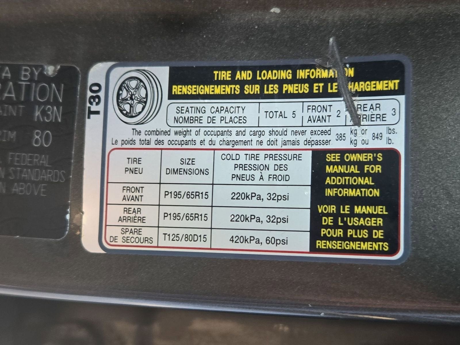 Equipped with 4-Wheel Disc Brakes, 5.5 x 15 Steel w/Full Covers Wheels, 6 Speakers, ABS brakes, Air Conditioning, AM/FM radio: SIRIUS, Anti-whiplash front head restraints, Brake assist, Bumpers: body-color, Cargo Mat, CD player, Cloth Seat Trim, Driver door bin, Driver vanity mirror, Dual front impact airbags, Dual front side impact airbags, Electric Power Steering, Electronic Stability Control, Front anti-roll bar, Front Bucket Seats, Front Center Armrest w/Storage, Front reading lights, Front wheel independent suspension, Heated door mirrors, Illuminated entry, iPod Cable, Low tire pressure warning, Occupant sensing airbag, Outside temperature display, Overhead airbag, Overhead console, Panic alarm, Passenger door bin, Passenger vanity mirror, Power door mirrors, Power steering, Power windows, Radio: AM/FM/CD/MP3/Satellite Audio System, Rear Bumper Applique, Rear seat center armrest, Rear window defroster, Remote keyless entry, Speed control, Speed-sensing steering, Split folding rear seat, Steering wheel mounted audio controls, Tachometer, Telescoping steering wheel, Tilt steering wheel, Traction control, Trip computer, Turn signal indicator mirrors, and Variably intermittent wipers.