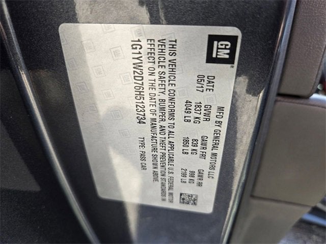 Equipped with Carbon Flash Badge Package, Preferred Equipment Group 1LT, 8 Speed Paddle Shift with Automatic Modes, 2.73 Limited Slip Performance Rear Axle Ratio, 4-Wheel Disc Brakes, 8-Way Driver & Passenger Seat Adjusters, 9 Speakers, ABS brakes, Adaptive suspension, Air Conditioning, Alloy wheels, AM/FM radio: SiriusXM, Apple CarPlay/Android Auto, Automatic temperature control, Bose Premium 9-Speaker Audio System Feature, Bumpers: body-color, Carbon Flash-Painted Outside Mirrors, Compass, Delay-off headlights, Driver door bin, Driver vanity mirror, Dual front impact airbags, Dual front side impact airbags, Electronic Stability Control, Emergency communication system, Exterior Parking Camera Rear, Four wheel independent suspension, Front anti-roll bar, Front Bucket Seats, Front Center Armrest, Front dual zone A/C, Front reading lights, Fully automatic headlights, GT Bucket Seats, Heads-Up Display, Heated door mirrors, High-Intensity Discharge Headlights, Illuminated entry, Leather Shift Knob, Leather steering wheel, Low tire pressure warning, Occupant sensing airbag, Outside temperature display, Painted Body-Color Carbon Fiber Removable Roof Panel, Panic alarm, Passenger door bin, Passenger vanity mirror, Power door mirrors, Power driver seat, Power passenger seat, Power steering, Power windows, Premium audio system: Chevrolet MyLink, Radio data system, Radio: Chevrolet MyLink Audio System, Rear anti-roll bar, Rear window defroster, Red Painted Calipers, Remote keyless entry, Remote Vehicle Starter System, Speed control, Speed-sensing steering, Spoiler, Sport steering wheel, Steering wheel mounted audio controls, Tachometer, Telescoping steering wheel, Tilt steering wheel, Traction control, Trip computer, Variably intermittent wipers, Voltmeter, Wheels: 19 x 10 Fr & 20 x 12 Rr Grand Sport, and Wheels: 19 x 10 Fr & 20 x 12 Rr Grand Sport Pearl.