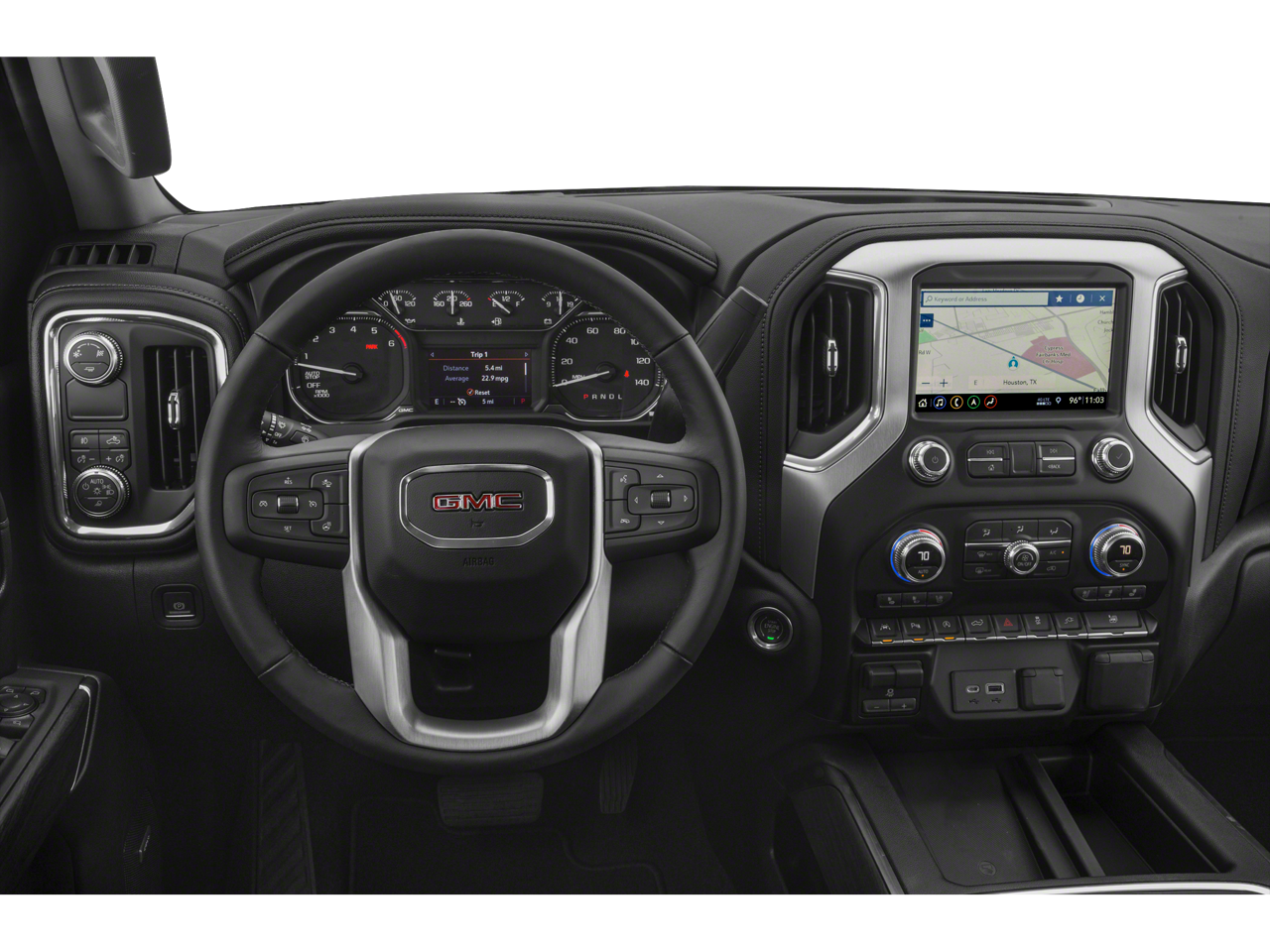 Equipped with Driver Alert Package I (Lane Change Alert w/Side Blind Zone Alert, Perimeter Lighting, Rear Cross Traffic Alert, and Ultrasonic Front & Rear Park Assist), Max Trailering Package (220 Amp Alternator, Enhanced Cooling Radiator, Heavier Duty Rear Springs, and Increased RGAWR), Preferred Equipment Group 4SA (12-Volt Rear Auxiliary Power Outlet, 120-Volt Bed Mounted Power Outlet, 120-Volt Instrument Panel Power Outlet, 170 Amp Alternator, Auxiliary External Transmission Oil Cooler, Chrome Grille, Color-Keyed Carpeting Floor Covering, Compass, Deep-Tinted Glass, Electric Rear-Window Defogger, Electrical Lock Control Steering Column, Front Frame-Mounted Black Recovery Hooks, GMC 4G LTE, GMC Connected Access, HD Radio, Heated Driver & Front Passenger Seating, Heavy-Duty Rear Locking Differential, Hitch Guidance, Hitch Guidance w/Hitch View, In-Vehicle Trailering App, Integrated Trailer Brake Controller, Keyless Open & Start, LED Cargo Area Lighting, Manual Tilt-Wheel & Telescoping Steering Column, OnStar & GMC Connected Services Capable, Power Door Locks, Power Front Passenger Windows w/Express Up/Down, Power Front Windows w/Driver Express Up/Down, Power Rear Windows w/Express Down, Rear Dual USB Charging-Only Ports, Rear Wheelhouse Liners, Remote Vehicle Starter System, Steering Wheel Audio Controls, and Theft Deterrent System (Unauthorized Entry)), SLT Convenience Package (2 USB Ports, 2 USB Ports (1st Row), Floor Mounted Console, Front Bucket Seats, Heated 2nd Row Outboard Seats, Power Sliding Rear Window w/Rear Defogger, Universal Home Remote, and Ventilated Driver & Front Passenger Seats), SLT Premium Package (Chrome Assist Steps), Trailering Package, 8-Speed Automatic, 4WD, Dark Walnut/Slate Leather, 10-Way Power Driver Seat Adjuster w/Lumbar, 10-Way Power Passenger Seat Adjuster w/Lumbar, 20 x 9 Polished Aluminum Wheels, 4-Wheel Disc Brakes, 6 Speakers, 6-Speaker Audio System Feature, ABS brakes, Air Conditioning, Alloy wheels, AM/FM radio: SiriusXM, Apple CarPlay/Android Auto, Auto-dimming door mirrors, Auto-dimming Rear-View mirror, Automatic temperature control, Brake assist, Bumpers: chrome, Delay-off headlights, Driver door bin, Driver Memory, Driver vanity mirror, Dual front impact airbags, Dual front side impact airbags, Electronic Stability Control, Front 40/20/40 Split-Bench Seat, Front anti-roll bar, Front Center Armrest w/Storage, Front dual zone A/C, Front fog lights, Front reading lights, Front wheel independent suspension, Fully automatic headlights, Heated door mirrors, Heated front seats, Heated steering wheel, Heavy Duty Suspension, Illuminated entry, Low tire pressure warning, Memory seat, Occupant sensing airbag, Outside temperature display, Overhead airbag, Overhead console, Panic alarm, Passenger door bin, Passenger vanity mirror, Perforated Leather-Appointed Seat Trim, Power door mirrors, Power driver seat, Power passenger seat, Power steering, Power windows, Premium audio system: GMC Infotainment System, Radio data system, Radio: Premium GMC Infotainment Sys w/Multi-Touch, Rear reading lights, Rear seat center armrest, Rear step bumper, Rear window defroster, Remote keyless entry, Security system, SiriusXM Radio, Speed control, Speed-sensing steering, Split folding rear seat, Steering wheel mounted audio controls, Tachometer, Telescoping steering wheel, Tilt steering wheel, Traction control, Trip computer, Variably intermittent wipers, Voltmeter, and Wheels: 18 x 8.5 6-Spoke Machined Aluminum.