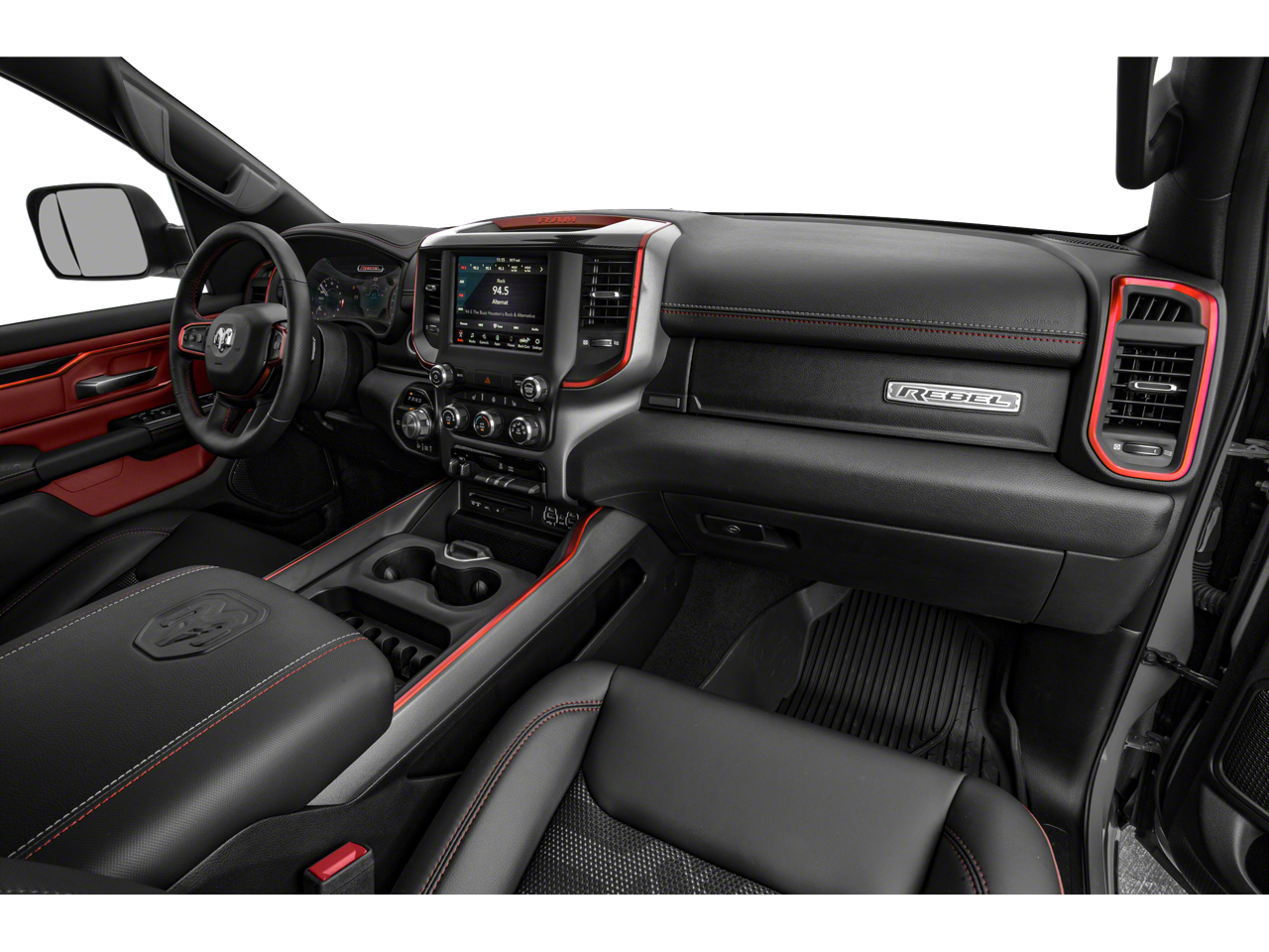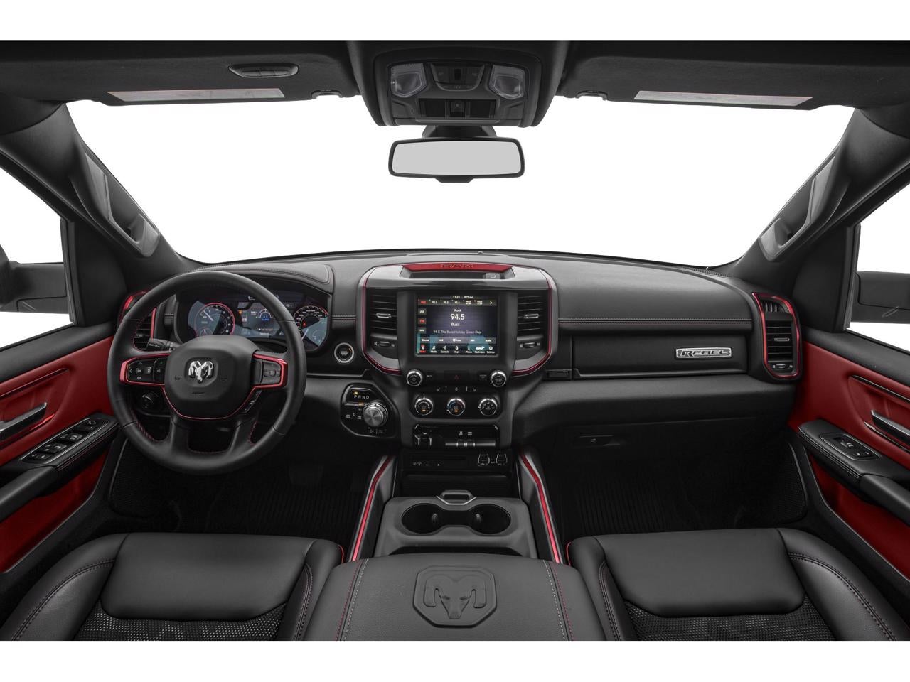 Equipped with Quick Order Package 23W Rebel (48V Belt Starter Generator and Body Color Door Handles), 3.92 Rear Axle Ratio, 4-Wheel Disc Brakes, 6 Speakers, ABS brakes, Air Conditioning, Alloy wheels, AM/FM radio: SiriusXM, Brake assist, Cloth/Vinyl Low Back Bucket Seats, Compass, Delay-off headlights, Driver door bin, Dual front impact airbags, Dual front side impact airbags, Electronic Stability Control, Front anti-roll bar, Front Bucket Seats, Front Center Armrest w/Storage, Front fog lights, Front reading lights, Front wheel independent suspension, Fully automatic headlights, GPS Antenna Input, Heated door mirrors, Illuminated entry, Leather steering wheel, Low tire pressure warning, Manufacturer's Statement of Origin, Occupant sensing airbag, Outside temperature display, Overhead airbag, Overhead console, Panic alarm, ParkView Rear Back-Up Camera, Passenger door bin, Passenger vanity mirror, Power door mirrors, Power driver seat, Power steering, Power windows, Radio data system, Radio: Uconnect 3 w/5 Display, Rear anti-roll bar, Rear seat center armrest, Rear step bumper, Remote keyless entry, SiriusXM Satellite Radio, Speed control, Split folding rear seat, Steering wheel mounted audio controls, Tachometer, Telescoping steering wheel, Tilt steering wheel, Traction control, Trip computer, Variably intermittent wipers, Voltmeter, and Wheels: 18 x 8 Painted Black.
