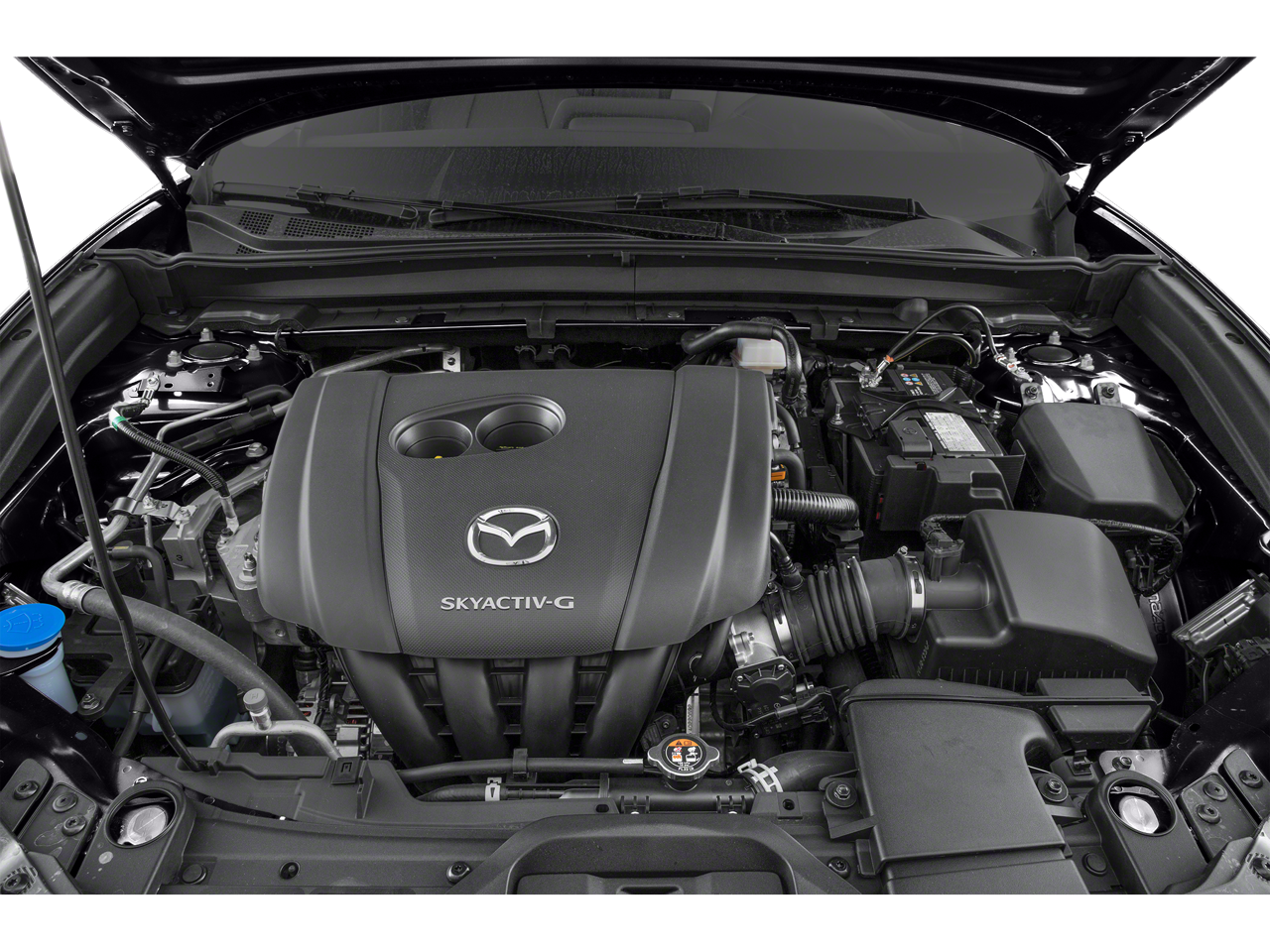 Equipped with Preferred Package (Blind Spot Monitoring w/Rear Cross Traffic Alert, Dual-Zone Automatic Climate Control System, Exterior Mirrors w/Memory Positioning, Front Grille Black Gloss Paint, Gloss Painted Speaker Grille, Illuminated Vanity Mirrors, Leather-Wrapped Steering Wheel & Gear Shift Knob, Mazda Advanced Keyless Entry, Overhead Console w/Sunglass Holder, Rear Privacy Glass, Rear Seat Armrest w/Cupholders, Shark Fin Antenna, and Side Mirror Turn Lamps), 12 Speakers, 18 x 7J Alloy Wheels, 3.626 Axle Ratio, 4-Wheel Disc Brakes, ABS brakes, Air Conditioning, Alloy wheels, AM/FM radio: SiriusXM, AppLink/Apple CarPlay and Android Auto, Auto High-beam Headlights, Automatic temperature control, Brake assist, Bumpers: body-color, Compass, Delay-off headlights, Driver door bin, Driver vanity mirror, Dual front impact airbags, Dual front side impact airbags, Electronic Stability Control, Emergency communication system: MAZDA CONNECT, Exterior Parking Camera Rear, Front anti-roll bar, Front Bucket Seats, Front Center Armrest, Front dual zone A/C, Front reading lights, Front wheel independent suspension, Fully automatic headlights, Heated Front Bucket Seats, Heated front seats, Illuminated entry, Knee airbag, Leather Shift Knob, Leather steering wheel, Leatherette Seat Trim, Low tire pressure warning, MAZDA CONNECT Infotainment System Voice Command, Memory seat, Occupant sensing airbag, Outside temperature display, Overhead airbag, Overhead console, Panic alarm, Passenger door bin, Passenger vanity mirror, Power door mirrors, Power driver seat, Power steering, Power windows, Radio data system, Radio: AM/FM Audio System, Rain sensing wipers, Rear seat center armrest, Rear window defroster, Rear window wiper, Remote keyless entry, Snowflake White Pearl Mica Paint, Speed control, Speed-sensing steering, Split folding rear seat, Spoiler, Steering wheel mounted audio controls, Tachometer, Telescoping steering wheel, Tilt steering wheel, Traction control, Trip computer, Turn signal indicator mirrors, and Variably intermittent wipers.