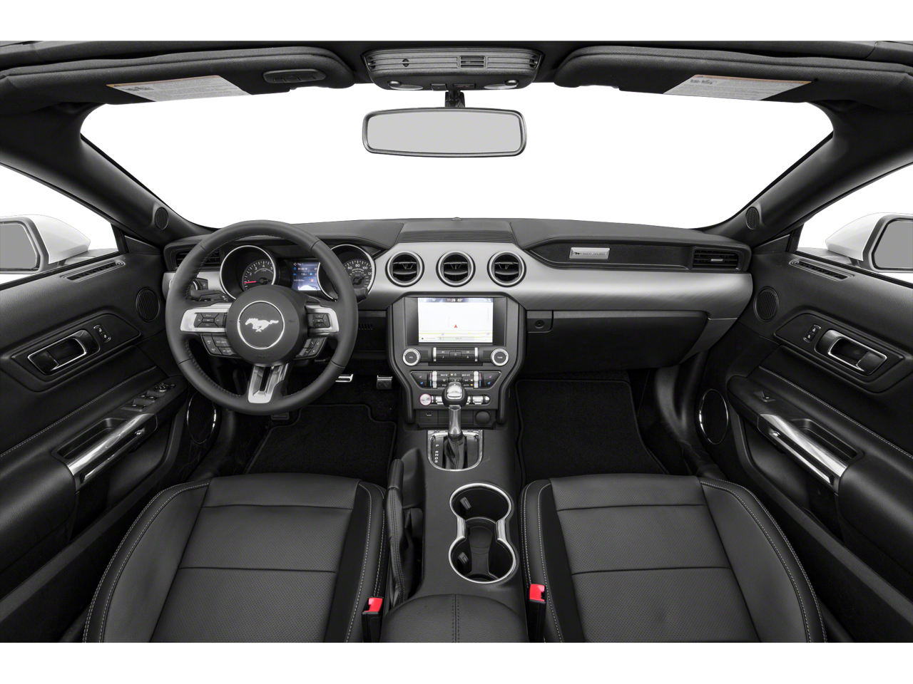 Equipped with Black Accent Package (Wheels: 19 x 8.5 Ebony Black-Painted Aluminum), Equipment Group 101A (AM/FM Stereo w/MP3 Player, Body-Color Blade Decklid Spoiler, Cloth Bucket Seats, Dual-Zone Automatic Temperature Control, Reverse Sensing System, SiriusXM Radio, SYNC 3 Communications & Entertainment System, and Wheels: 18 x 8 Machined-Face Aluminum), 4-Wheel Disc Brakes, 6 Speakers, ABS brakes, Air Conditioning, Alloy wheels, AM/FM radio, AM/FM Stereo, Auto-dimming Rear-View mirror, Brake assist, Bumpers: body-color, Compass, Convertible roof lining, Delay-off headlights, Driver door bin, Driver vanity mirror, Dual front impact airbags, Dual front side impact airbags, Electronic Stability Control, Emergency communication system: 911 Assist, Exterior Parking Camera Rear, Four wheel independent suspension, Front anti-roll bar, Front Bucket Seats, Front Center Armrest, Front reading lights, Fully automatic headlights, Glass rear window, Illuminated entry, Knee airbag, Leather Shift Knob, Low tire pressure warning, Occupant sensing airbag, Outside temperature display, Overhead console, Panic alarm, Passenger door bin, Passenger vanity mirror, Power convertible roof, Power door mirrors, Power steering, Power windows, Radio data system, Rear anti-roll bar, Rear window defroster, Remote keyless entry, Security system, Speed control, Speed-sensing steering, Speed-Sensitive Wipers, Steering wheel mounted audio controls, SYNC Communications & Entertainment System, Tachometer, Telescoping steering wheel, Tilt steering wheel, Traction control, Trip computer, Variably intermittent wipers, Voice-Activated Touch-Screen Navigation System, Voltmeter, and Wheels: 17 Sparkle Silver-Painted Aluminum.