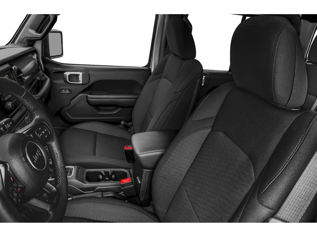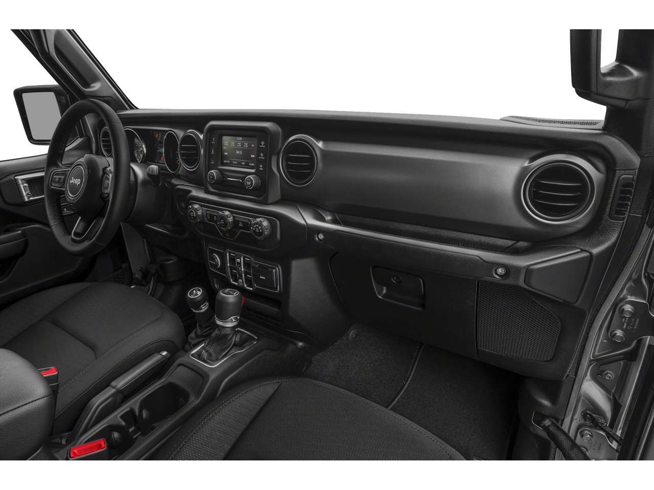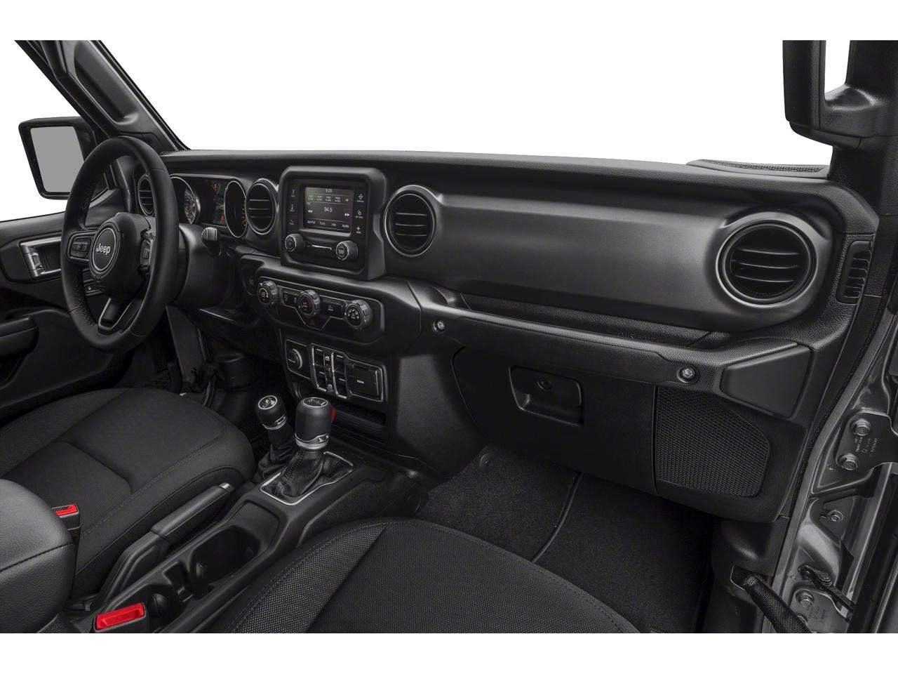 Equipped with Quick Order Package 23S (Automatic Headlamps, Deep Tint Sunscreen Windows, Front 1-Touch Down Power Windows, Leather Wrapped Steering Wheel, Normal Duty Plus Suspension, Power Heated Mirrors, Power Tailgate Lock, Remote Keyless Entry, Security Alarm, Speed Sensitive Power Locks, Sun Visors w/Illuminated Vanity Mirrors, and Wheels: 17 x 7.5 Tech Silver Aluminum), Quick Order Package 24S, 110 mph Vehicle Max Speed Calibration, 3.73 Rear Axle Ratio, 4-Wheel Disc Brakes, 8 Speakers, ABS brakes, Air Conditioning, AM/FM radio, Anti-Lock 4-Wheel Disc Heavy Duty Brakes, Brake assist, Cloth Low-Back Bucket Seats, Compass, Delay-off headlights, Driver door bin, Driver vanity mirror, Dual front impact airbags, Dual front side impact airbags, Electronic Stability Control, Front anti-roll bar, Front Bucket Seats, Front Center Armrest w/Storage, Front fog lights, Front reading lights, Integrated roll-over protection, Low tire pressure warning, Normal Duty Suspension, Occupant sensing airbag, Outside temperature display, ParkView Rear Back-Up Camera, Passenger door bin, Passenger vanity mirror, Power steering, Premium Black Sunrider Soft Top, Radio data system, Radio: Uconnect 3 w/5 Display, Rear anti-roll bar, Rear reading lights, Speed control, Split folding rear seat, Steering wheel mounted audio controls, Tachometer, Telescoping steering wheel, Tilt steering wheel, Traction control, Trip computer, Variably intermittent wipers, and Wheels: 17 x 7.5 Black Steel Styled.