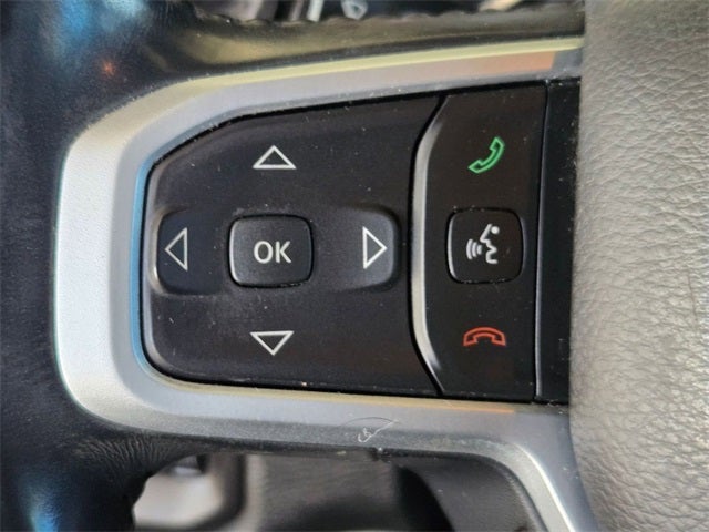 Equipped with Big Horn Level 1 Equipment Group (2nd Row In Floor Storage Bins, Auto-Dimming Rear-View Mirror, Big Horn IP Badge, Black Premium Power Mirrors, Class IV Receiver Hitch, Cluster 3.5 TFT Color Display, Foam Bottle Insert (Door Trim Panel), Glove Box Lamp, Power 4-Way Driver Lumbar Adjust, Power 8-Way Driver Seat, Power Adjustable Pedals, Radio: Uconnect 4 w/8.4 Display, Rear Dome w/On/Off Switch Lamp, Rear Power Sliding Window, Rear Window Defroster, SiriusXM Satellite Radio, Sun Visors w/Illuminated Vanity Mirrors, and Universal Garage Door Opener), Quick Order Package 23Z Big Horn (Big Horn Badge), Quick Order Package 27Z Big Horn, 3 Rear Seat Head Restraints, 3.21 Rear Axle Ratio, 4 Way Front Headrests, 4-Wheel Disc Brakes, 48V Belt Starter Generator, 6 Speakers, ABS brakes, Air Conditioning, Alloy wheels, AM/FM radio, Brake assist, Bumpers: chrome, Cloth Bench Seat, Compass, Delay-off headlights, Driver door bin, Dual front impact airbags, Dual front side impact airbags, Electronic Stability Control, Engine Calibration Flash (DISC), Front anti-roll bar, Front Center Armrest w/Storage, Front fog lights, Front reading lights, Front Seat Back Map Pockets, Front wheel independent suspension, Fully automatic headlights, GPS Antenna Input, Heated door mirrors, Illuminated entry, Leather steering wheel, Low tire pressure warning, Occupant sensing airbag, Outside temperature display, Overhead airbag, Overhead console, Panic alarm, ParkView Rear Back-Up Camera, Passenger door bin, Passenger vanity mirror, Power door mirrors, Power steering, Power windows, Radio data system, Radio: Uconnect 3 w/5 Display, Rear 60/40 Folding Seat, Rear anti-roll bar, Rear seat center armrest, Rear step bumper, Rear Wheelhouse Liners, Remote keyless entry, Remote Start System, Speed control, Split folding rear seat, Steering wheel mounted audio controls, Tachometer, Telescoping steering wheel, Tilt steering wheel, Traction control, Trip computer, Variably intermittent wipers, Voltmeter, Wheels: 18 x 8 Cast-Aluminum Painted, and Wheels: 20 x 9 Aluminum Chrome Clad.