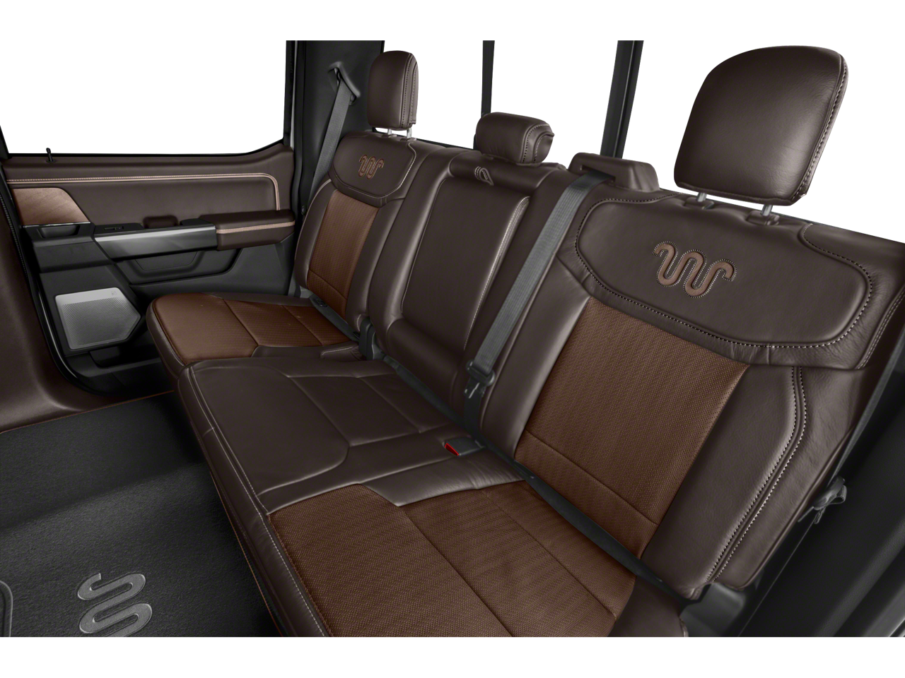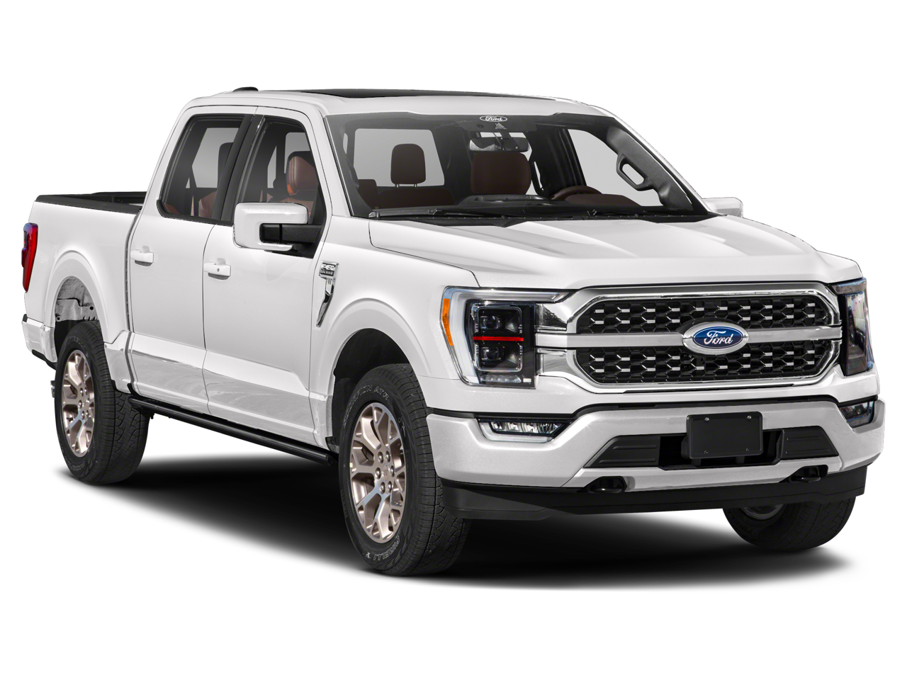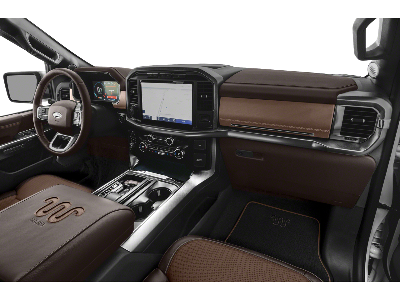 Equipped with Equipment Group 601A High (Power-Deployable Running Boards), Ford Co-Pilot360 Active 2.0 Package (Active Park Assist 2.0 and BlueCruise Hands-Free Driving), FX4 Off-Road Package (4x4 FX4 Off-Road Bodyside Decal, Hill Descent Control, Monotube Rear Shocks, Off-Road Tuned Front Shock Absorbers, Rock Crawl Mode, and Tray Style Floor Liner), King Ranch Chrome Appearance Package (Bright Belt Moldings, Chrome Door Handles w/Body-Color Strap, Chrome Skull Caps on Exterior Mirrors, and Wheels: 20 Chrome-Like PVD), King Ranch Monochromatic Paint Package (Painted Body-Color Wheellip Molding), Max Trailer Tow Package (Class IV Trailer Hitch Receiver, Extended Range 36 Gallon Fuel Tank, Integrated Trailer Brake Controller, and Pro Trailer Backup Assist), 3.5L PowerBoost Full-Hybrid V6, 4WD, 18 Machined-Aluminum Wheels, 360 Degree Camera, 4-Wheel Disc Brakes, 8 Speakers, ABS brakes, Adjustable pedals, Air Conditioning, Alloy wheels, AM/FM radio: SiriusXM with 360L, Auto High-beam Headlights, Auto tilt-away steering wheel, Auto-dimming door mirrors, Auto-dimming Rear-View mirror, Automatic temperature control, Brake assist, Compass, Delay-off headlights, Driver door bin, Driver vanity mirror, Dual front impact airbags, Dual front side impact airbags, Electronic Stability Control, Emergency communication system: SYNC 4 911 Assist, Exterior Parking Camera Rear, Front anti-roll bar, Front Bucket Seats, Front Center Armrest, Front dual zone A/C, Front fog lights, Front License Plate Bracket, Front reading lights, Front wheel independent suspension, Fully automatic headlights, Garage door transmitter, Genuine wood console insert, Genuine wood dashboard insert, Genuine wood door panel insert, Heated door mirrors, Heated front seats, Heated rear seats, Heated steering wheel, Illuminated entry, Interior Work Surface, King Ranch Leather Bucket Seats, Low tire pressure warning, Memory seat, Navigation system: Connected Navigation (90-Day Trial), Occupant sensing airbag, Outside temperature display, Overhead airbag, Overhead console, Panic alarm, Partitioned Lockable Fold-Flat Storage, Passenger door bin, Passenger vanity mirror, Pedal memory, Power door mirrors, Power driver seat, Power passenger seat, Power steering, Power windows, Pro Power Onboard - 7.2KW, Radio data system, Radio: B&O Sound System by Bang & Olufsen, Rain sensing wipers, Rear reading lights, Rear seat center armrest, Rear step bumper, Rear window defroster, Remote keyless entry, Security system, Speed control, Speed-sensing steering, Split folding rear seat, Steering wheel memory, Steering wheel mounted audio controls, SYNC 4 w/Enhanced Voice Recognition, Tachometer, Telescoping steering wheel, Tilt steering wheel, Traction control, Trip computer, Turn signal indicator mirrors, Twin Panel Moonroof, Variably intermittent wipers, Ventilated front seats, and Voltmeter.