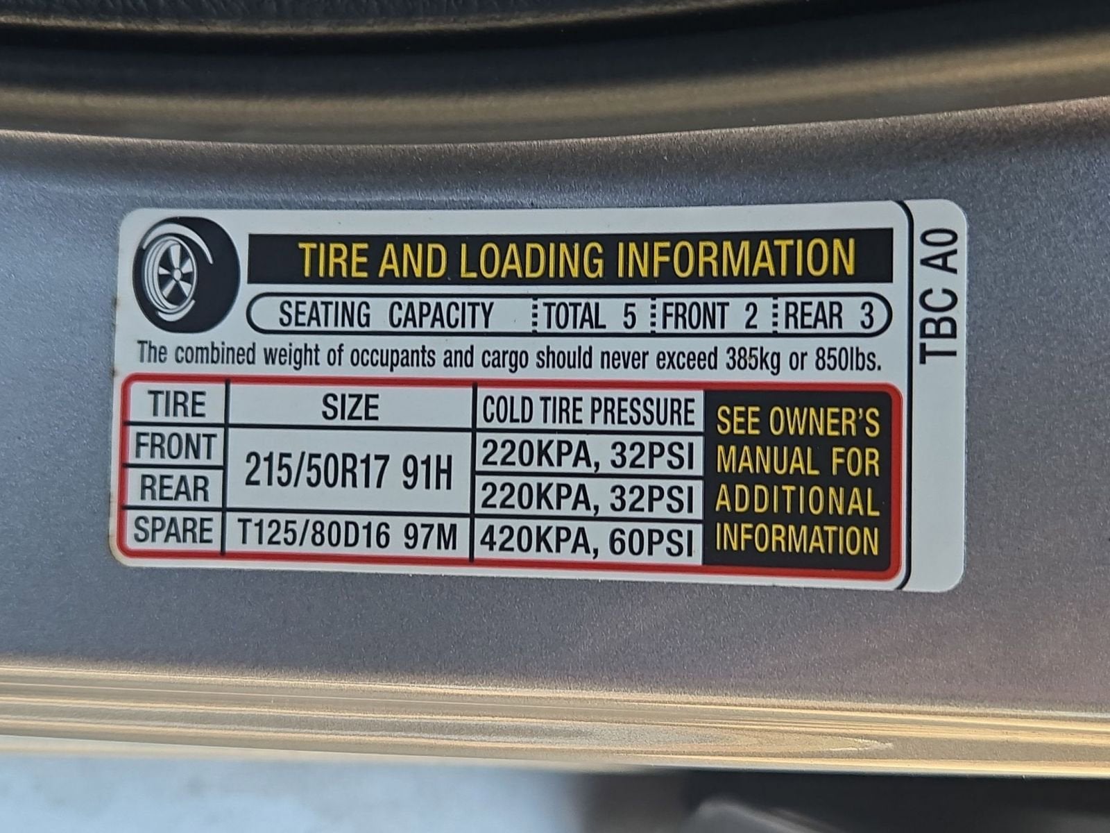 - Tires: 215/50R17 91H AS