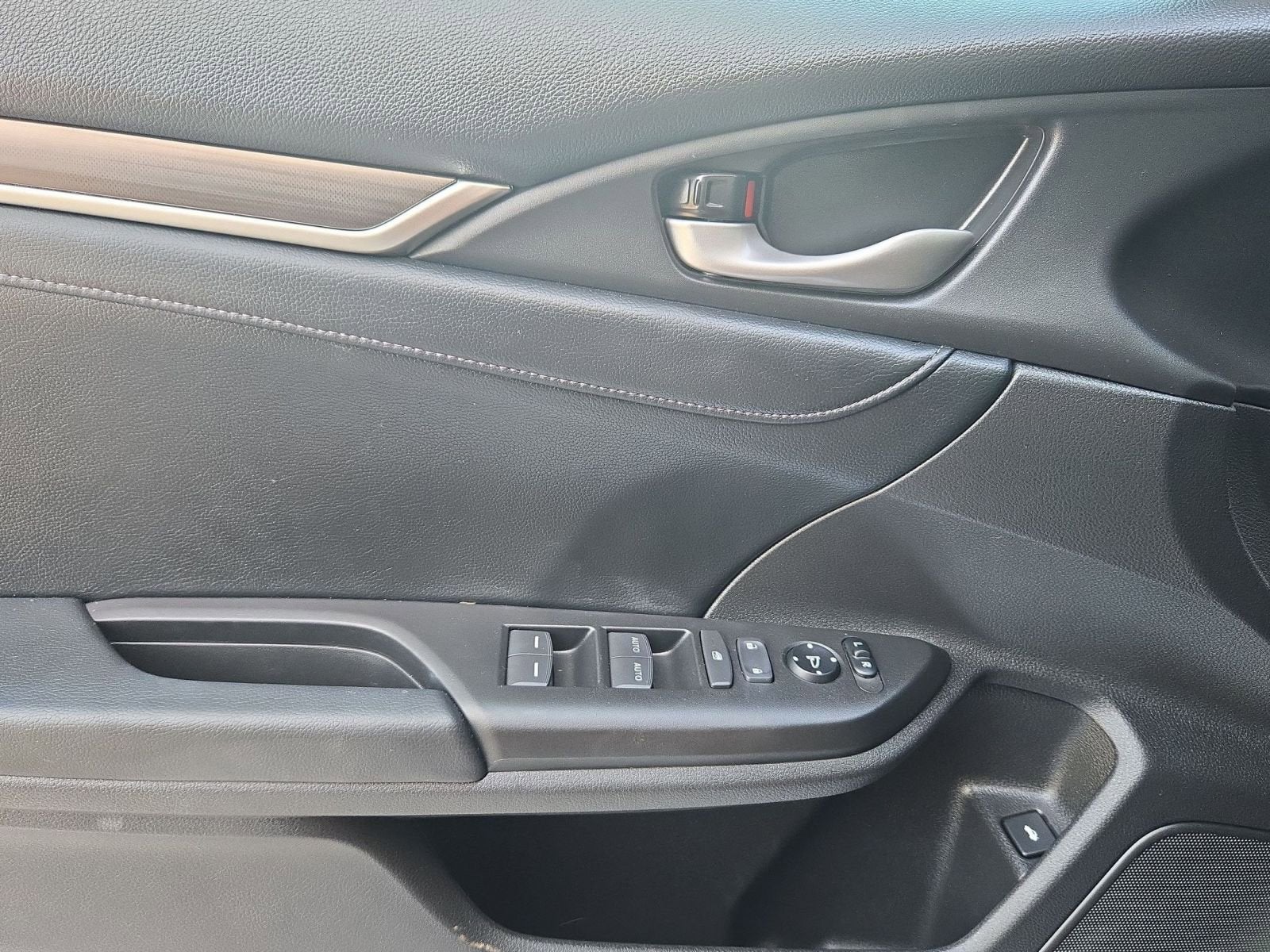 Equipped with Leather, 17 Alloy Wheels, 4-Wheel Disc Brakes, 8 Speakers, ABS brakes, Adaptive Cruise Control: Adaptive Cruise Control (ACC) with Low-Speed Follow, Air Conditioning, Alloy wheels, AM/FM radio: SiriusXM, Apple CarPlay/Android Auto, Auto High-beam Headlights, Auto-dimming Rear-View mirror, Automatic temperature control, Brake assist, Bumpers: body-color, Delay-off headlights, Driver door bin, Driver vanity mirror, Dual front impact airbags, Dual front side impact airbags, Electronic Stability Control, Emergency communication system: HondaLink, Exterior Parking Camera Rear, Forward collision: Collision Mitigation Braking System (CMBS) + FCW mitigation, Four wheel independent suspension, Front anti-roll bar, Front Bucket Seats, Front Center Armrest, Front dual zone A/C, Front fog lights, Front reading lights, Fully automatic headlights, Garage door transmitter: HomeLink, Heated door mirrors, Heated Front Bucket Seats, Heated front seats, Illuminated entry, Lane departure: Lane Keeping Assist System (LKAS) active, Leather Seat Trim, Leather Shift Knob, Low tire pressure warning, Occupant sensing airbag, Outside temperature display, Overhead airbag, Overhead console, Panic alarm, Passenger door bin, Passenger vanity mirror, Power door mirrors, Power driver seat, Power moonroof, Power steering, Power windows, Radio data system, Radio: 180-Watt AM/FM/HD/SiriusXM Audio System, Rear anti-roll bar, Rear seat center armrest, Rear window defroster, Remote keyless entry, Security system, Speed control, Speed-sensing steering, Speed-Sensitive Wipers, Split folding rear seat, Spoiler, Steering wheel mounted audio controls, Tachometer, Telescoping steering wheel, Tilt steering wheel, Traction control, Trip computer, and Variably intermittent wipers.