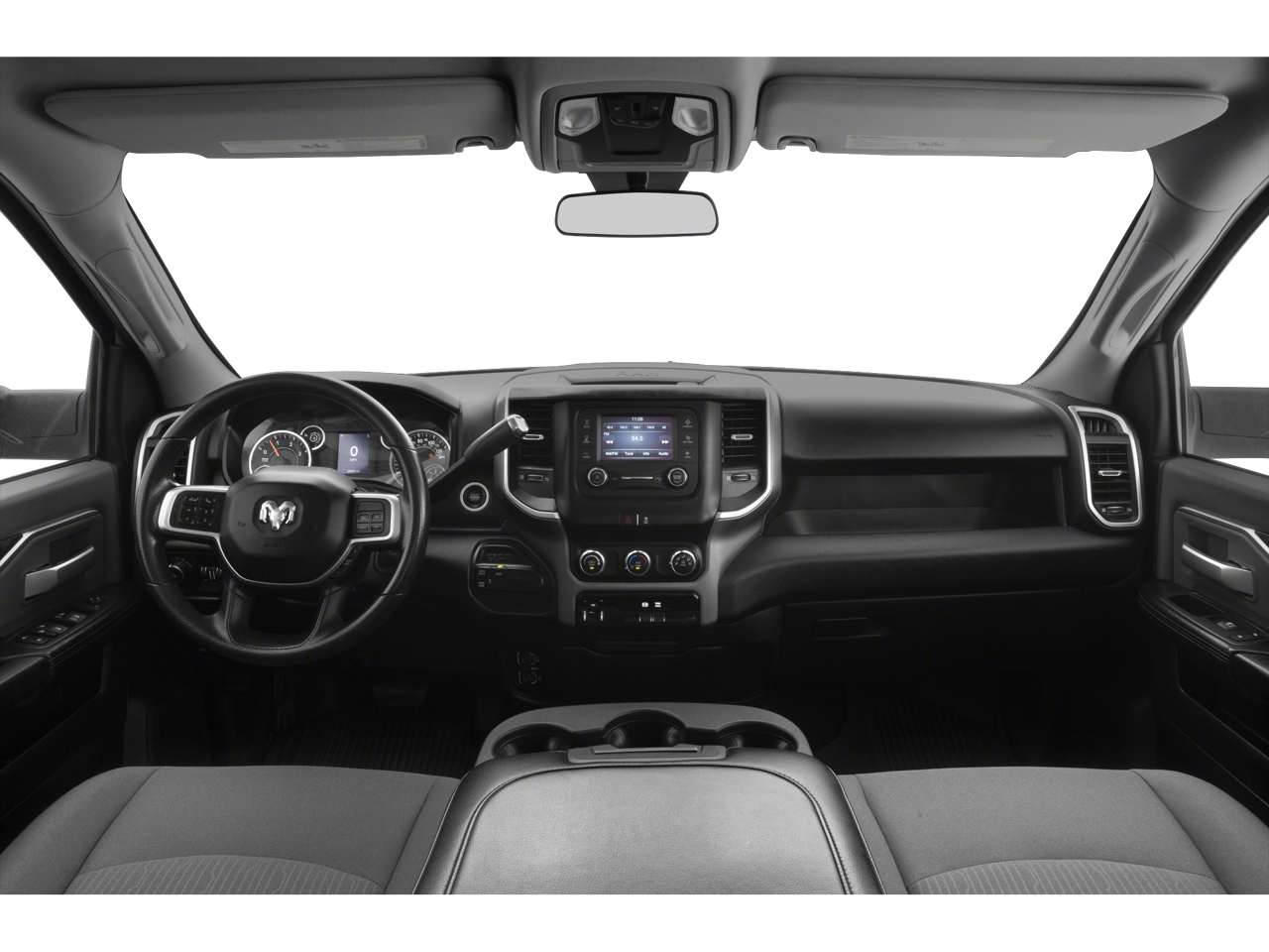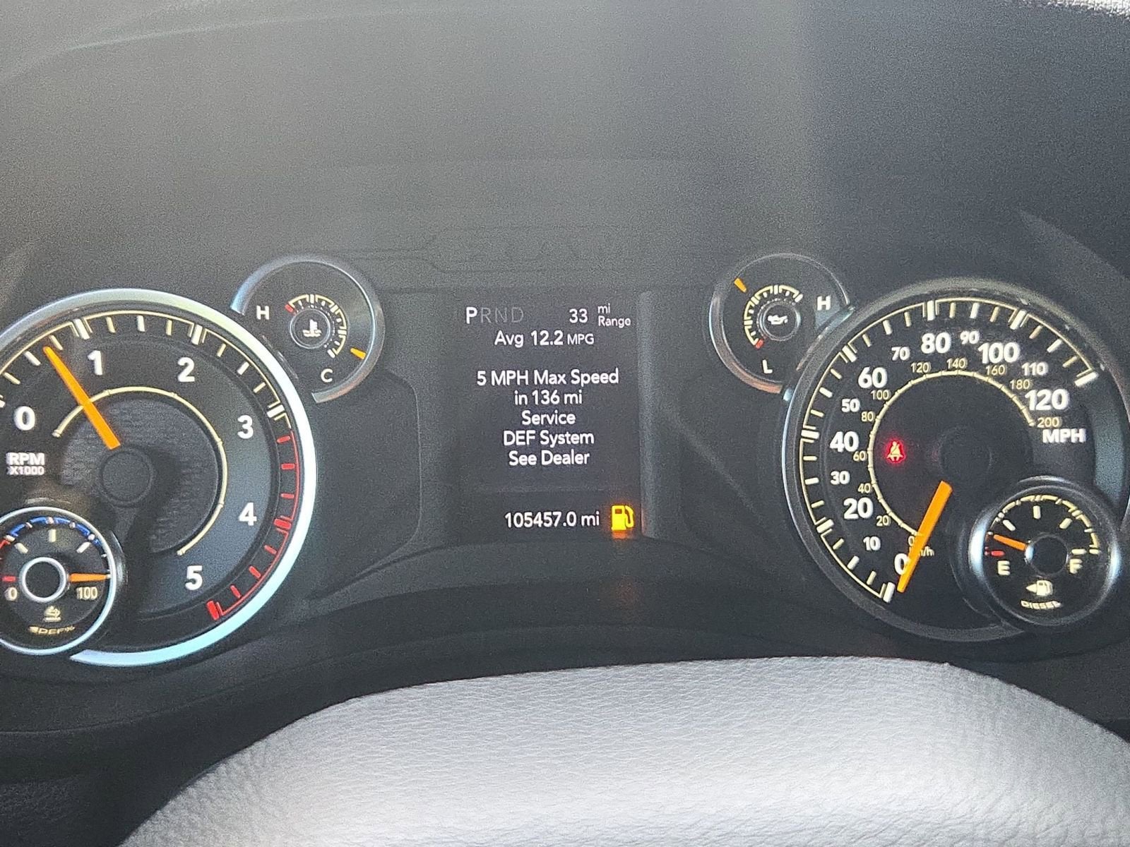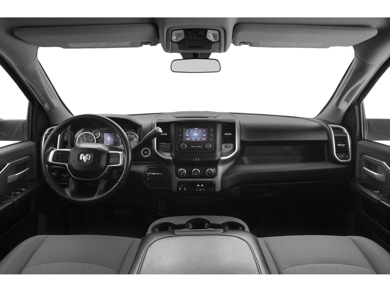 Equipped with Quick Order Package 2GZ Big Horn, Quick Order Package 2HZ Big Horn, 2 Way Rear Headrest Seat, 3.73 Axle Ratio, 4 Way Front Headrests, 4-Wheel Disc Brakes, 40/20/40 Split Bench Seat, 6 Speakers, ABS brakes, Active Noise Control System, Air Conditioning, AM/FM radio, Brake assist, Bumpers: chrome, Center Hub, Center Stack Storage Drawer, Chrome Flat Cab-Length Side Steps, Cloth 40/20/40 Bench Seat, Compass, Delay-off headlights, Driver door bin, Dual front impact airbags, Dual front side impact airbags, Electronic Stability Control, Electronically Controlled Throttle, Front anti-roll bar, Front Center Armrest w/Storage, Front License Plate Bracket, Front reading lights, Fully automatic headlights, GPS Antenna Input, Heated door mirrors, Illuminated entry, Integrated Voice Command w/Bluetooth®, Low tire pressure warning, Manual Adjust 4-Way Driver Seat, Manufacturer's Statement of Origin, Occupant sensing airbag, Outside temperature display, Overhead airbag, Overhead console, Panic alarm, ParkView Rear Back-Up Camera, Passenger door bin, Passenger vanity mirror, Power door mirrors, Power steering, Power windows, Radio data system, Radio: Uconnect 3 w/5 Display, Rear anti-roll bar, Rear Folding Seat, Rear seat center armrest, Rear step bumper, Remote keyless entry, Speed control, Tachometer, Tilt steering wheel, Tip Start, Tow Hooks, Traction control, Trip computer, Turn signal indicator mirrors, Variably intermittent wipers, Vendor Painted Cargo Box Tracking, Voltmeter, and Wheels: 18 x 8.0 Steel Chrome Clad.