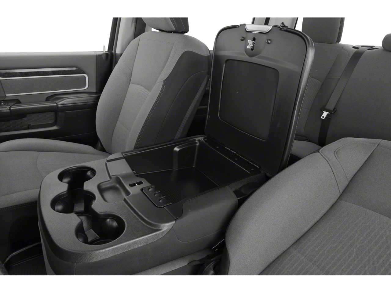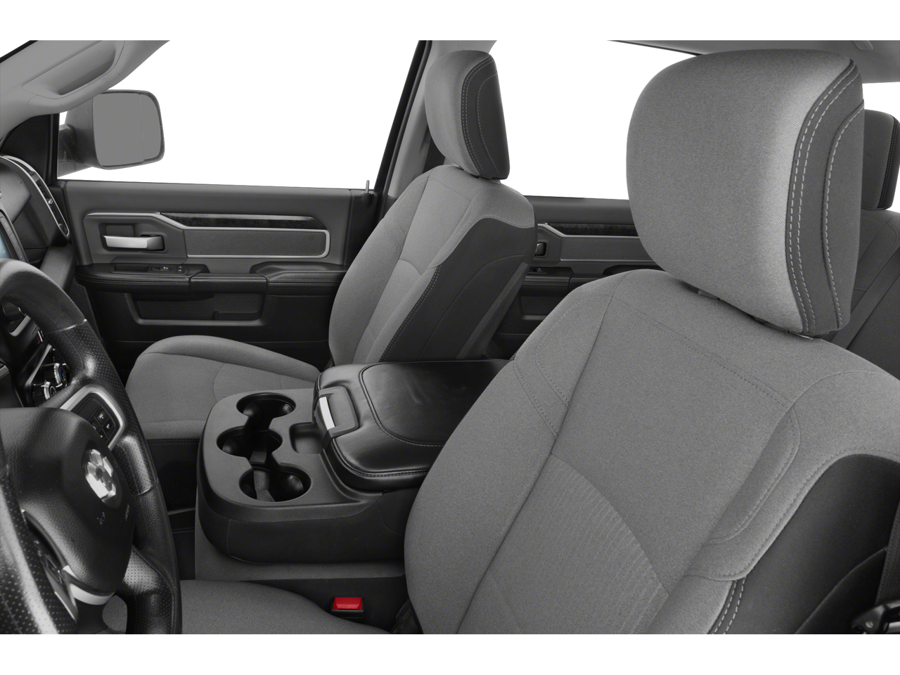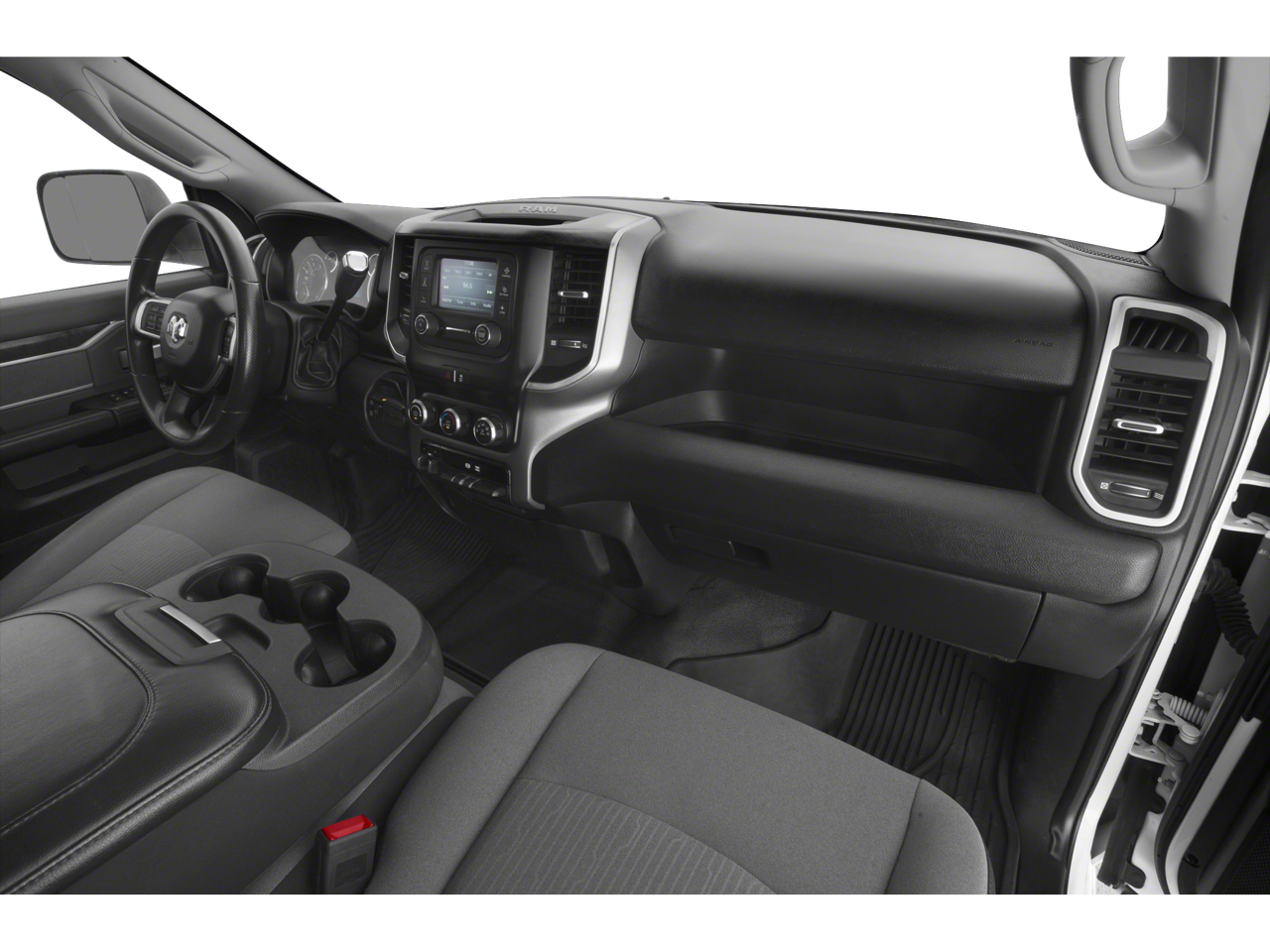 Equipped with Quick Order Package 2GZ Big Horn, Quick Order Package 2HZ Big Horn, 2 Way Rear Headrest Seat, 3.73 Axle Ratio, 4 Way Front Headrests, 4-Wheel Disc Brakes, 40/20/40 Split Bench Seat, 6 Speakers, ABS brakes, Active Noise Control System, Air Conditioning, AM/FM radio, Brake assist, Bumpers: chrome, Center Hub, Center Stack Storage Drawer, Chrome Flat Cab-Length Side Steps, Cloth 40/20/40 Bench Seat, Compass, Delay-off headlights, Driver door bin, Dual front impact airbags, Dual front side impact airbags, Electronic Stability Control, Electronically Controlled Throttle, Front anti-roll bar, Front Center Armrest w/Storage, Front License Plate Bracket, Front reading lights, Fully automatic headlights, GPS Antenna Input, Heated door mirrors, Illuminated entry, Integrated Voice Command w/Bluetooth®, Low tire pressure warning, Manual Adjust 4-Way Driver Seat, Manufacturer's Statement of Origin, Occupant sensing airbag, Outside temperature display, Overhead airbag, Overhead console, Panic alarm, ParkView Rear Back-Up Camera, Passenger door bin, Passenger vanity mirror, Power door mirrors, Power steering, Power windows, Radio data system, Radio: Uconnect 3 w/5 Display, Rear anti-roll bar, Rear Folding Seat, Rear seat center armrest, Rear step bumper, Remote keyless entry, Speed control, Tachometer, Tilt steering wheel, Tip Start, Tow Hooks, Traction control, Trip computer, Turn signal indicator mirrors, Variably intermittent wipers, Vendor Painted Cargo Box Tracking, Voltmeter, and Wheels: 18 x 8.0 Steel Chrome Clad.