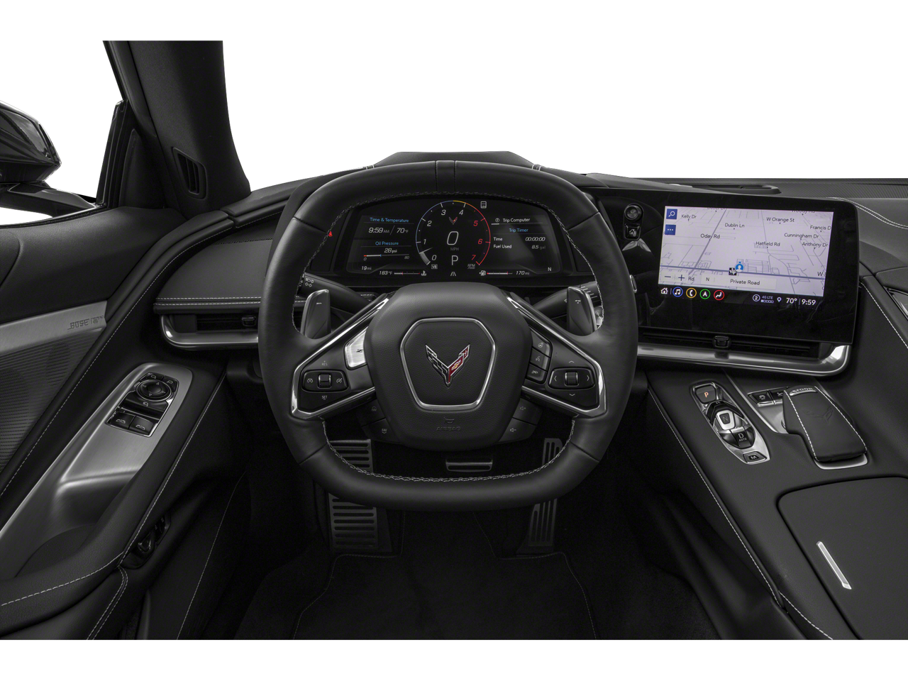 Equipped with Memory Driver & Passenger Convenience Package, Preferred Equipment Group 2LT (2 Cargo Nets, Driver Power Bolster Seat Adjuster, Electrical Theft Deterrent System, HD Front & Rear Vision Cameras, Head-Up Display, Heated & Vented Driver & Passenger Seats, Heated Steering Wheel, Passenger Power Bolster Seat Adjuster, Performance Data & Video Recorder, Power Driver Lumbar Control Seat Adjuster, Power Passenger Lumbar Control Seat Adjuster, Power-Adjustable Outside Heated Mirrors, Rear Camera Mirror, Rear Cross Traffic Alert, Side Blind Zone Alert, Universal Home Remote, Vehicle Inclination Theft Deterrent Sensor, Vehicle Interior Movement Theft Deterrent Sensor, and Wireless Charging for Devices), 14 Speakers, 4-Wheel Disc Brakes, 8-Way Power Driver Seat Adjuster, 8-Way Power Passenger Seat Adjuster, ABS brakes, Air Conditioning, Alloy wheels, AM/FM radio: SiriusXM, Apple CarPlay/Android Auto, Auto-dimming door mirrors, Auto-dimming Rear-View mirror, Automatic temperature control, Body-Color Removable Roof Panel, Bose Performance Series Sound System w/14 Speakers, Brake assist, Bumpers: body-color, Compass, Delay-off headlights, Driver door bin, Driver vanity mirror, Dual front impact airbags, Dual front side impact airbags, Electronic Stability Control, Emergency communication system: OnStar and Chevrolet connected services capable, Four wheel independent suspension, Front anti-roll bar, Front Bucket Seats, Front Center Armrest, Front dual zone A/C, Front reading lights, Fully automatic headlights, Garage door transmitter, GT1 Bucket Seats, HD Radio, Heads-Up Display, Heated door mirrors, Heated front seats, Heated steering wheel, Illuminated entry, Leather Shift Knob, Leather steering wheel, Low tire pressure warning, Memory seat, Mulan Lthr Seating Surfaces w/Perforated Inserts, Navigation System, Occupant sensing airbag, Orange Seat Belt Color, Outside temperature display, Overhead console, Panic alarm, Passenger door bin, Passenger vanity mirror, Power door mirrors, Power driver seat, Power passenger seat, Power steering, Power windows, Premium audio system: Chevrolet Infotainment 3 Premium, Radio data system, Radio: Chevrolet Infotainment 3 Premium System, Rear anti-roll bar, Rear window defroster, Remote keyless entry, Security system, SiriusXM Radio, Speed control, Speed-sensing steering, Sport steering wheel, Steering wheel memory, Steering wheel mounted audio controls, Tachometer, Telescoping steering wheel, Tilt steering wheel, Traction control, Trip computer, Turn signal indicator mirrors, Variably intermittent wipers, Ventilated front seats, Voltmeter, Wheels: 19 x 8.5 Fr/20 x 11 Rr Bright Silver, and Wheels: 19 x 8.5 Fr/20 x 11 Rr Gloss Black.