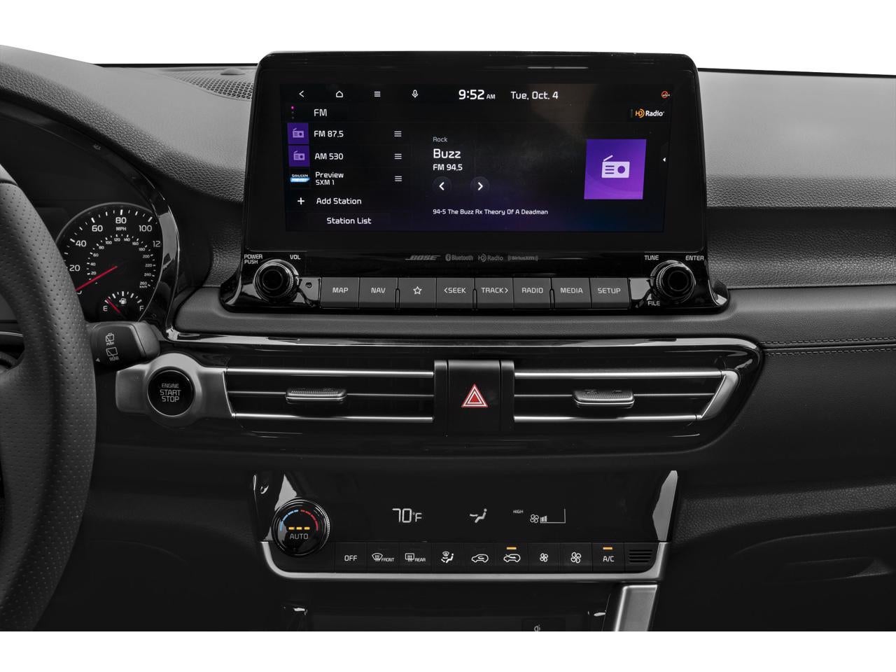- Radio: AM/FM/MP3 Display Audio w/Navigation -inc: 10.25" touch screen, satellite radio, UVO telematics, Android Auto, Apple CarPlay, voice recognition, USB connectivity and Bose premium sound system w/8 speakers including subwoofer