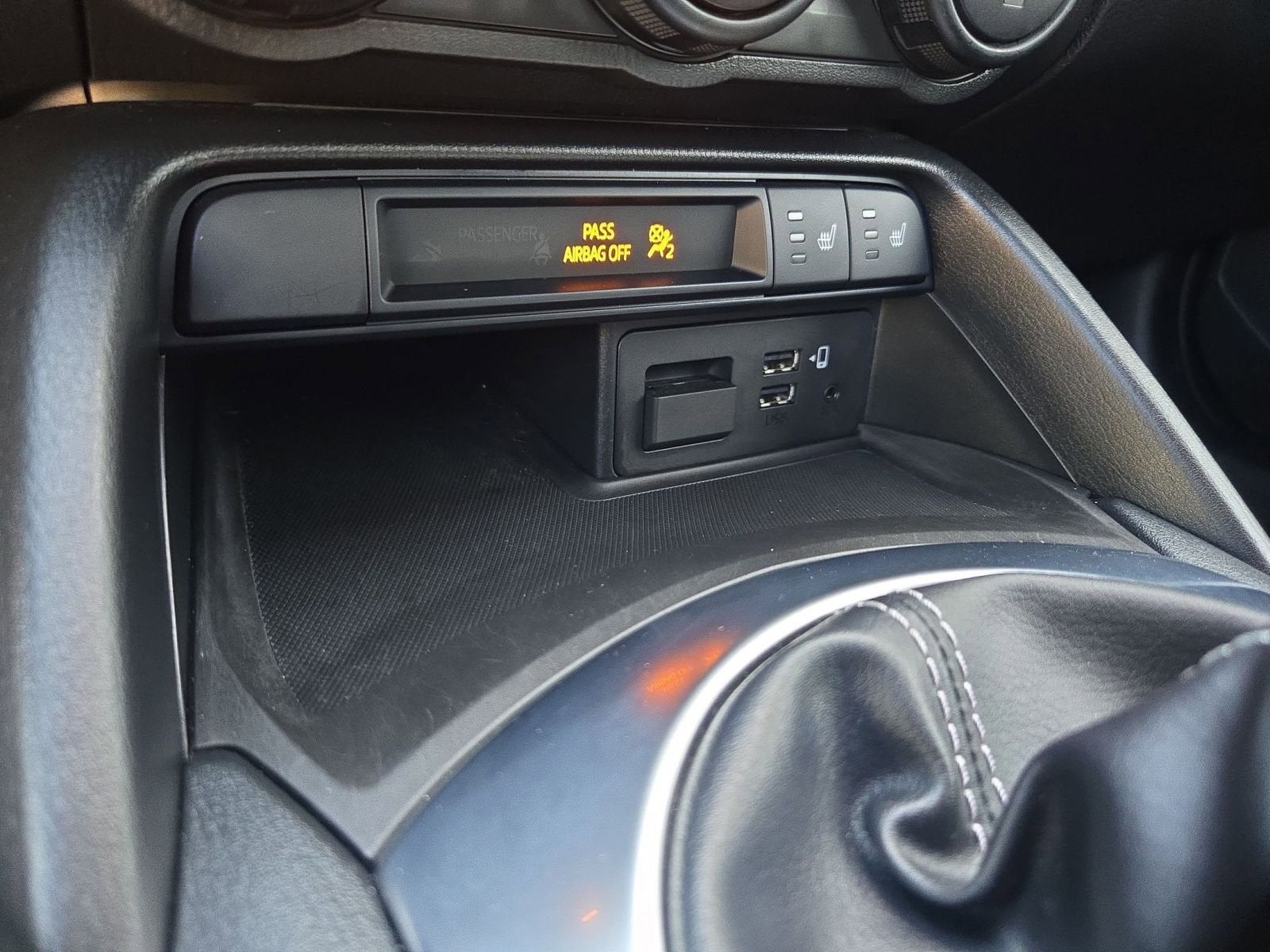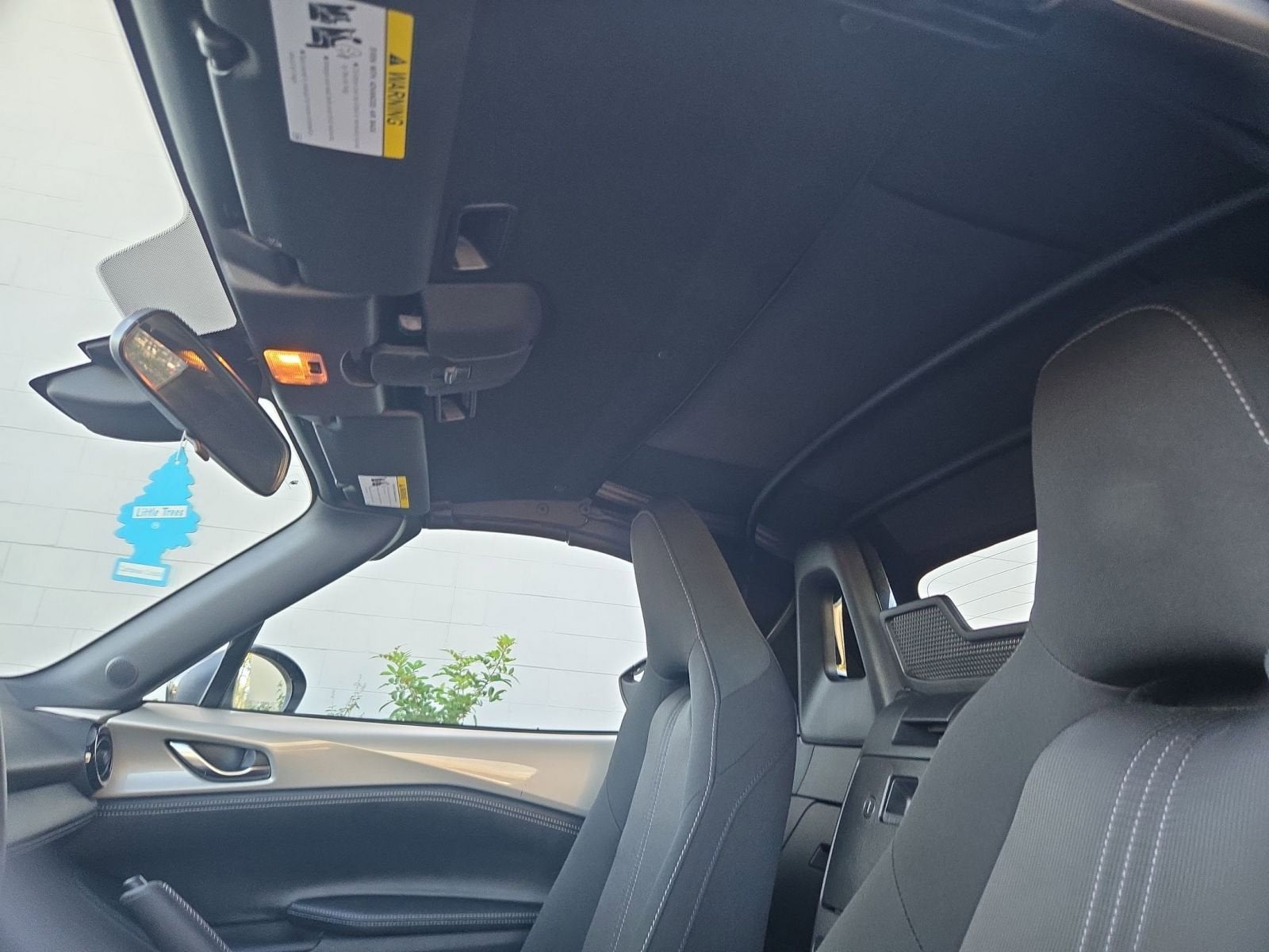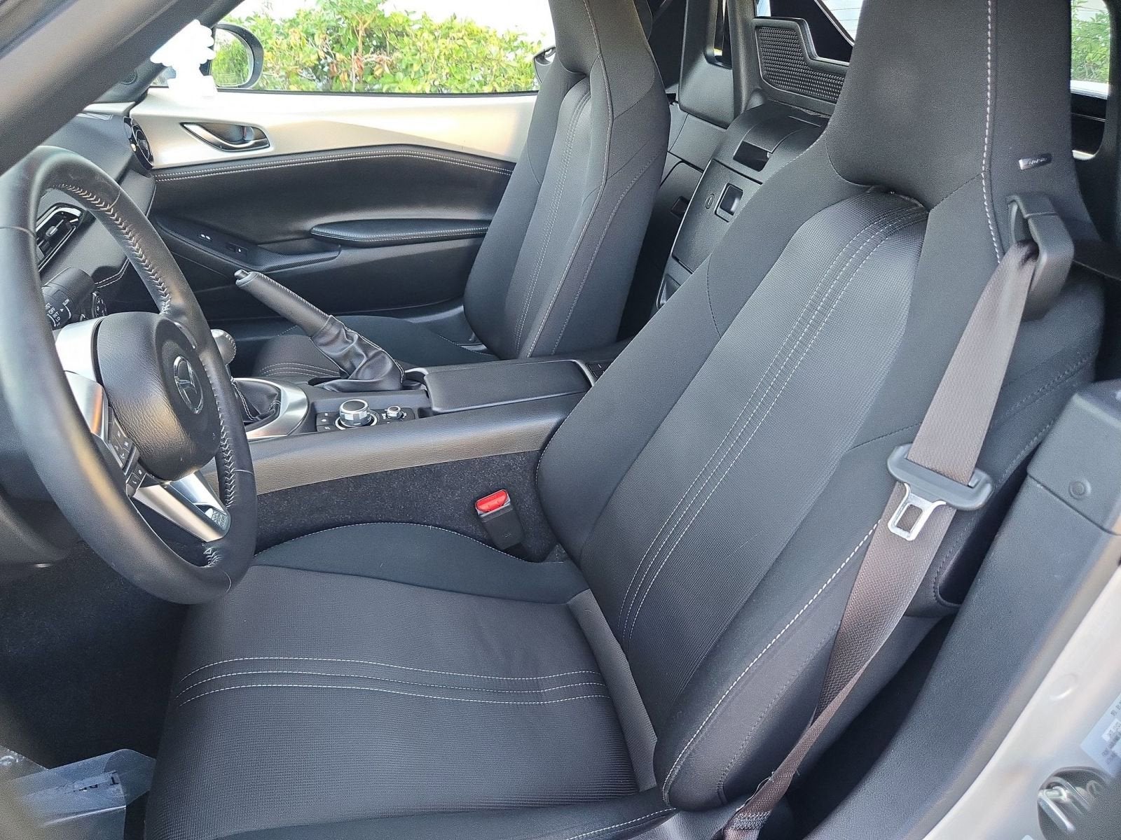 Equipped with 4-Wheel Disc Brakes, 9 Speakers, ABS brakes, Air Conditioning, Alloy wheels, AM/FM radio: SiriusXM, AppLink/Apple CarPlay and Android Auto, Brake assist, Bumpers: body-color, Cargo Net, Cloth Upholstery w/Light Gray Stitching, Convertible roof wind blocker, Driver vanity mirror, Dual front impact airbags, Dual front side impact airbags, Electronic Stability Control, Emergency communication system: MAZDA CONNECT, Exterior Parking Camera Rear, First Aid Kit, Four wheel independent suspension, Front anti-roll bar, Front Bucket Seats, Front Center Armrest, Glass rear window, Heated Front Bucket Seats, Heated front seats, Illuminated entry, Leather Shift Knob, Low tire pressure warning, MAZDA CONNECT, Occupant sensing airbag, Outside temperature display, Panic alarm, Passenger vanity mirror, Power door mirrors, Power steering, Power windows, Radio data system, Radio: Bose Audio System w/AudioPilot, Rear anti-roll bar, Rear window defroster, Remote keyless entry, Roadside Assistance Kit, Speed control, Speed-sensing steering, Spoiler, Sport steering wheel, Steering wheel mounted audio controls, Tachometer, Telescoping steering wheel, Tilt steering wheel, Traction control, Trip computer, Variably intermittent wipers, Wheel Locks, and Wheels: 17 x 7 Metallic Black Aluminum Alloy.