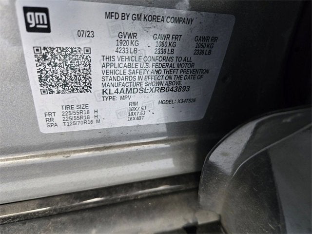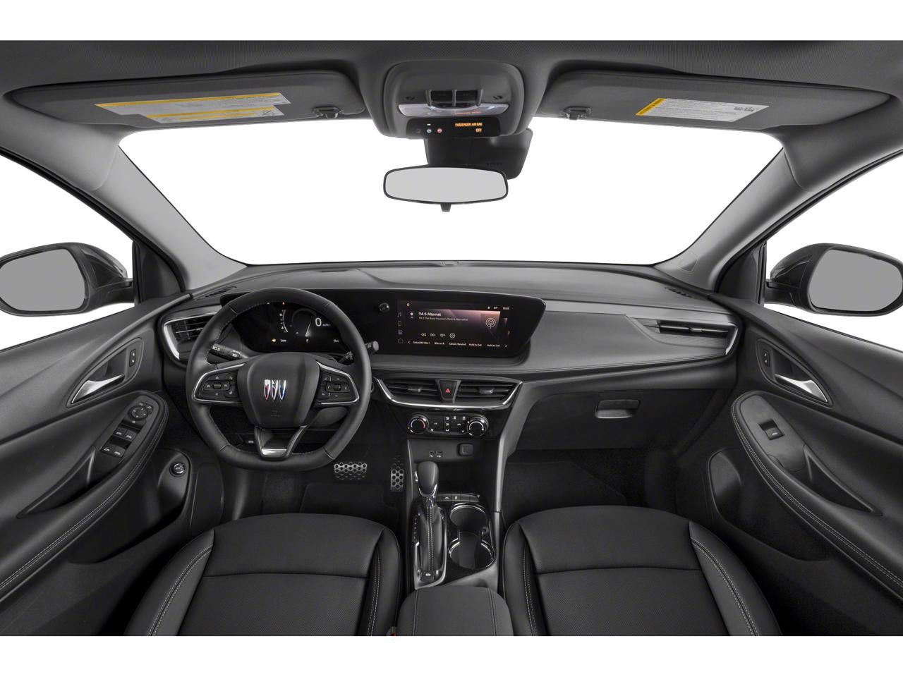 Equipped with Black Roof Package (Black Exterior Mirror Caps, Black Roof Panel, and Black Roof Rails), Comfort Package (2-Way Power Driver Lumbar Control, 8-Way Power Driver Seat Adjuster, Flat-Folding Front Passenger Seatback, Heated Driver & Front Passenger Seats, Heated Steering Wheel, Rear Center Armrest, and Remote Vehicle Starter System), Preferred Equipment Group 1SD, 2 USB Ports (1 Type-A, 1 Type-C), 4-Way Manual Passenger Seat Adjuster, 4-Wheel Disc Brakes, 5.45 Final Drive Axle Ratio, 6 Speakers, 6-Way Manual Driver Seat Adjuster, ABS brakes, Air Conditioning, Alloy wheels, AM/FM radio: SiriusXM, Auto High-beam Headlights, Automatic temperature control, Brake assist, Bumpers: body-color, Compass, Delay-off headlights, Driver door bin, Driver vanity mirror, Dual front impact airbags, Dual front side impact airbags, Electronic Stability Control, Emergency communication system: OnStar and Buick connected services capable, Enhanced Performance 6-Speaker System, Front anti-roll bar, Front Bucket Seats, Front Center Armrest, Front reading lights, Front wheel independent suspension, Fully automatic headlights, Heated door mirrors, Illuminated entry, Knee airbag, Leatherette Seat Trim, Low tire pressure warning, Occupant sensing airbag, Outside temperature display, Overhead airbag, Overhead console, Panic alarm, Passenger door bin, Passenger vanity mirror, Power door mirrors, Power Liftgate, Power steering, Power windows, Radio data system, Radio: Audio System w/AM/FM, Rear reading lights, Rear side impact airbag, Rear window defroster, Rear window wiper, Remote keyless entry, Ride & Handling Suspension, Security system, SiriusXM, Speed control, Speed-sensing steering, Split folding rear seat, Spoiler, Sport steering wheel, Steering wheel mounted audio controls, Tachometer, Telescoping steering wheel, Tilt steering wheel, Traction control, Trip computer, Variably intermittent wipers, Wheels: 18 Gloss Black Aluminum, and Wireless Apple CarPlay/Wireless Android Auto.
