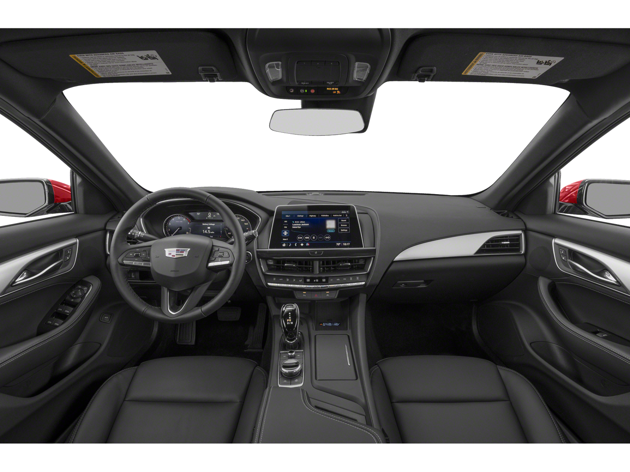 Equipped with Preferred Equipment Group 1SB, 3 USB Ports, 4-Wheel Disc Brakes, 9 Speakers, ABS brakes, Air Conditioning, Alloy wheels, AM/FM radio: SiriusXM with 360L, Apple CarPlay/Android Auto, Auto High-beam Headlights, Automatic Stop/Start w/Disable, Automatic temperature control, Brake assist, Bumpers: body-color, Compass, Delay-off headlights, Driver 2-Way Power Lumbar Seat Adjuster, Driver door bin, Driver vanity mirror, Dual front impact airbags, Dual front side impact airbags, Electronic Stability Control, Emergency communication system: OnStar and Cadillac connected services capable, Exterior Parking Camera Rear, Four wheel independent suspension, Front anti-roll bar, Front Bucket Seats, Front Center Armrest, Front dual zone A/C, Front Passenger 2-Way Power Lumbar Seat Adjuster, Front reading lights, Fully automatic headlights, Garage door transmitter, HD Radio, Heated door mirrors, Highway Safety Kit, Illuminated entry, Inteluxe Seating Surfaces, Knee airbag, Leather steering wheel, Low tire pressure warning, Occupant sensing airbag, Outside temperature display, Overhead airbag, Overhead console, Panic alarm, Passenger door bin, Passenger vanity mirror, Power door mirrors, Power driver seat, Power passenger seat, Power steering, Power windows, Premium 9-Speaker Audio System Feature, Radio data system, Radio: Cadillac User Experience, Rain sensing wipers, Rear anti-roll bar, Rear reading lights, Rear seat center armrest, Rear window defroster, Remote keyless entry, SiriusXM w/360L, Speed control, Speed-sensing steering, Split folding rear seat, Steering wheel mounted audio controls, Tachometer, Teen Driver, Telescoping steering wheel, Tilt steering wheel, Traction control, Trip computer, Turn signal indicator mirrors, Variably intermittent wipers, Voltmeter, and Wheels: 18 Alloy w/Bright Silver Finish.