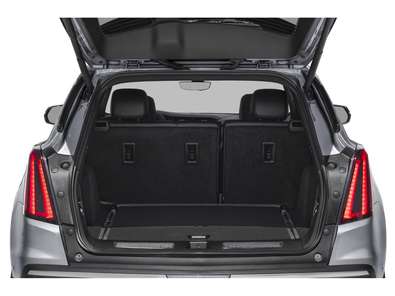 - Opens or closes when the system senses the key fob and the driver extends their foot under the left-hand side of the rear bumper over an image of the Cadillac Crest projected under the vehicle