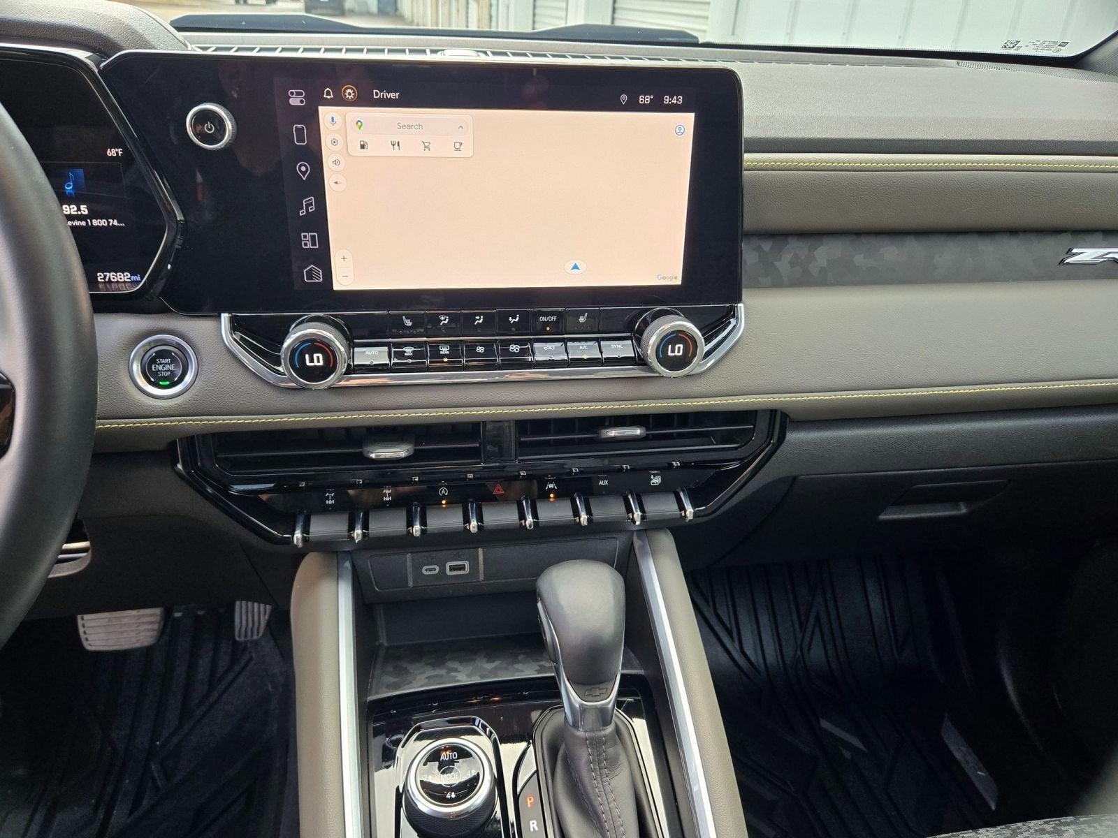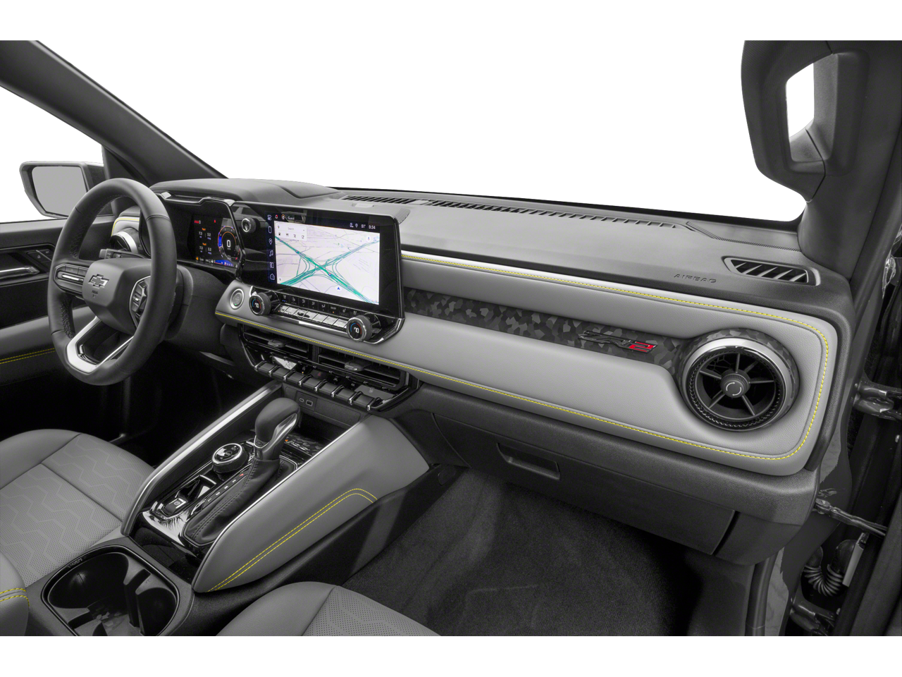 Equipped with Preferred Equipment Group 4ZR (Automatic Emergency Braking, Chevy Safety Assist, Electronic Automatic Cruise Control, Following Distance Indicator, Forward Collision Alert, Front Pedestrian & Bicyclist Braking, IntelliBeam Automatic High Beam On/Off, Lane Keep Assist w/Lane Departure Warning, and Rear-Window Electric Defogger), Safety Package (Blind Zone Steering Assist w/Trailering, Rear Cross Traffic Braking, and Rear Park Assist), ZR2 Off-Road Package, 4WD, 1st & 2nd Row All-Weather Floor Liner (LPO), 3.42 Rear Axle Ratio, 4-Way Manual Passenger Seat Adjuster, 4-Wheel Disc Brakes, 6 Speakers, 6-Speaker Audio System Feature, 8-Way Power Driver Seat Adjuster, ABS brakes, Air Conditioning, Alloy wheels, AM/FM radio: SiriusXM, Apple CarPlay/Android Auto, Auto High-beam Headlights, Auto-dimming Rear-View mirror, Automatic temperature control, Black Nameplates (LPO), Black Tailgate Lettering (LPO), Brake assist, Cloth/Evotex Seat Trim, Compass, Delay-off headlights, Driver door bin, Driver vanity mirror, Dual front impact airbags, Dual front side impact airbags, Electronic Stability Control, Front anti-roll bar, Front Bucket Seats, Front Center Armrest, Front dual zone A/C, Front fog lights, Front Passenger Seatback Map Pocket, Front reading lights, Front wheel independent suspension, Heated door mirrors, Heated Driver & Front Passenger Seats, Heated front seats, Illuminated entry, Low tire pressure warning, Navigation System, Occupant sensing airbag, Outside temperature display, Overhead airbag, Overhead console, Panic alarm, Passenger door bin, Passenger vanity mirror, Power door mirrors, Power Driver Lumbar Control Seat Adjuster, Power driver seat, Power Sliding Glass w/Manual Shade Sunroof, Power steering, Power windows, Radio data system, Radio: 11.3 Diagonal Advanced Color LCD Display, Rear reading lights, Rear step bumper, Rear window defroster, Remote keyless entry, Security system, SiriusXM Radio, Speed control, Speed-sensing steering, Split folding rear seat, Steering Wheel Mounted Audio Controls, Steering wheel mounted audio controls, Tachometer, Telescoping steering wheel, Tilt steering wheel, Traction control, Trip computer, Variably intermittent wipers, Wheel Locks, Wheels: 17 x 8 Graphite & Oxide Gold Aluminum, and Wireless Phone Projection.