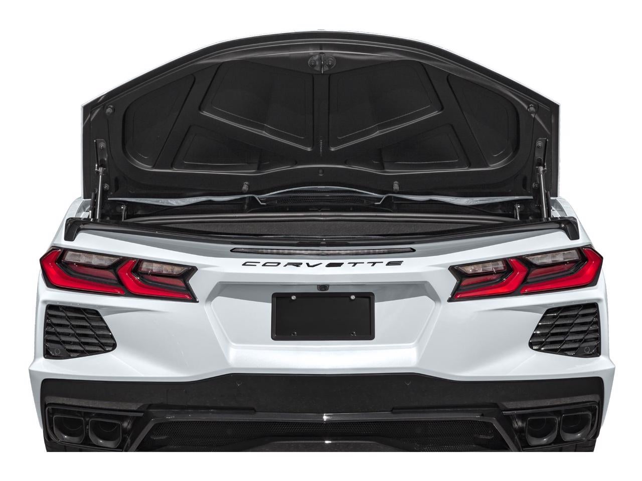 Equipped with Memory Driver & Passenger Convenience Package, Preferred Equipment Group 2LT (2 Cargo Nets, Bose Performance Series Sound System w/14 Speakers, Driver Power Bolster Seat Adjuster, Electrical Theft Deterrent System, HD Front & Rear Vision Cameras, Head-Up Display, Heated & Vented Driver & Passenger Seats, Heated Steering Wheel, Passenger Power Bolster Seat Adjuster, Performance Data & Video Recorder, Power Driver Lumbar Control Seat Adjuster, Power Passenger Lumbar Control Seat Adjuster, Power-Adjustable Outside Heated Mirrors, Rear Cross Traffic Alert, Side Blind Zone Alert, Universal Home Remote, Vehicle Inclination Theft Deterrent Sensor, Vehicle Interior Movement Theft Deterrent Sensor, and Wireless Charging for Devices), 14 Speakers, 4-Wheel Disc Brakes, 8-Way Power Driver Seat Adjuster, 8-Way Power Passenger Seat Adjuster, ABS brakes, Air Conditioning, Alloy wheels, AM/FM radio: SiriusXM, Auto High-beam Headlights, Auto-dimming door mirrors, Auto-dimming Rear-View mirror, Automatic Leveling System Headlamp Control, Automatic temperature control, Black Composite Rocker Extensions (LPO), Black Exhaust Tips, Black Lug Nuts (LPO), Black Wheel Locks (LPO), Brake assist, Bright Red-Painted Calipers, Bumpers: body-color, Carbon Flash Metallic Fender Hash Stripes (LPO), Carbon Flash/Edge Red Stinger Stripe, Compass, Convertible HardTop, Convertible roof lining, Dark Stealth Front Crossed Flags Emblem (LPO), Delay-off headlights, Driver door bin, Driver vanity mirror, Dual front impact airbags, Dual front side impact airbags, Electronic Stability Control, Emergency communication system: OnStar and Chevrolet connected services capable, Exterior Parking Camera Rear, Four wheel independent suspension, Front anti-roll bar, Front Bucket Seats, Front Center Armrest, Front dual zone A/C, Front Lift Adjustable Height w/Memory, Front reading lights, Fully automatic headlights, Garage door transmitter, Glass rear window, GT1 Bucket Seats, Heads-Up Display, Heated door mirrors, Heated front seats, Heated steering wheel, Illuminated entry, Integrated roll-over protection, Lane Departure Warning System, Leather Shift Knob, Leather steering wheel, Low tire pressure warning, Memory seat, Mulan Lthr Seating Surfaces w/Perforated Inserts, Navigation System, Occupant sensing airbag, Outside temperature display, Overhead console, Panic alarm, Passenger door bin, Passenger vanity mirror, Performance Exhaust w/Stainless-Steel Tips, Power convertible roof, Power door mirrors, Power driver seat, Power passenger seat, Power steering, Power windows, Premium audio system: Chevrolet Infotainment 3 Premium, Radio data system, Radio: Chevrolet Infotainment 3 Premium System, Rear anti-roll bar, Rear window defroster, Remote keyless entry, Security system, Speed control, Speed-sensing steering, Sport steering wheel, Steering wheel memory, Steering wheel mounted audio controls, Tachometer, Telescoping steering wheel, Tilt steering wheel, Torch Red Seat Belt Color, Traction control, Trip computer, Turn signal indicator mirrors, Variably intermittent wipers, Ventilated front seats, Voltmeter, Wheels: 19 x 8.5 Fr/20 x 11 Rr Bright Silver, and Wheels: 19 x 8.5 Fr/20 x 11 Rr Midnight Gray.