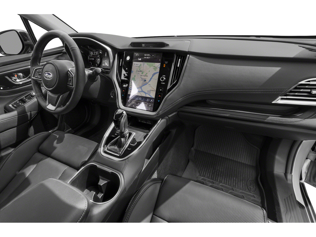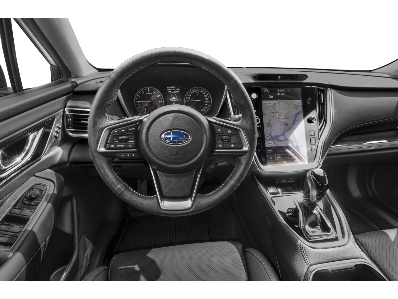 Equipped with Power Moonroof & Htd Steering Wheel & Nav System (DriverFocus (Driver Monitoring System), Heated Steering Wheel, Power Moonroof, and Radio: Subaru STARLINK 11.6 Multimedia Nav System), 12 Speakers, 3.90 Axle Ratio, 4-Wheel Disc Brakes, ABS brakes, Air Conditioning, Alloy wheels, AM/FM radio: SiriusXM, Auto High-beam Headlights, Auto-Dimming Exterior Mirror w/Approach Light, Auto-dimming Rear-View mirror, Automatic temperature control, Brake assist, Bumpers: body-color, Compass, Driver door bin, Driver vanity mirror, Dual front impact airbags, Dual front side impact airbags, Electronic Stability Control, Emergency communication system: STARLINK Safety Plus (3-year free trial), Exterior Parking Camera Rear, Four wheel independent suspension, Front anti-roll bar, Front Bucket Seats, Front Center Armrest w/Storage, Front dual zone A/C, Front fog lights, Front reading lights, Fully automatic headlights, Garage door transmitter: HomeLink, harman/kardon® Speakers, Heated door mirrors, Heated Front Bucket Seats, Heated front seats, Heated rear seats, Illuminated entry, Knee airbag, Leather Shift Knob, Leather steering wheel, LED Upgrade, Low tire pressure warning, Memory seat, Occupant sensing airbag, Outside temperature display, Overhead airbag, Overhead console, Panic alarm, Passenger door bin, Passenger vanity mirror, Perforated Leather-Trimmed Upholstery, Power door mirrors, Power driver seat, Power Liftgate, Power passenger seat, Power steering, Power windows, Radio: Subaru STARLINK 11.6 Multimedia Plus Sys, Rear anti-roll bar, Rear Bumper Cover, Rear seat center armrest, Rear window defroster, Rear window wiper, Remote keyless entry, Roof rack, Security system, Speed control, Speed-sensing steering, Split folding rear seat, Spoiler, Steering wheel mounted audio controls, Tachometer, Telescoping steering wheel, Tilt steering wheel, Traction control, Trip computer, Turn signal indicator mirrors, Variably intermittent wipers, and Wheels: 18 x 7J Black Aluminum-Alloy.
