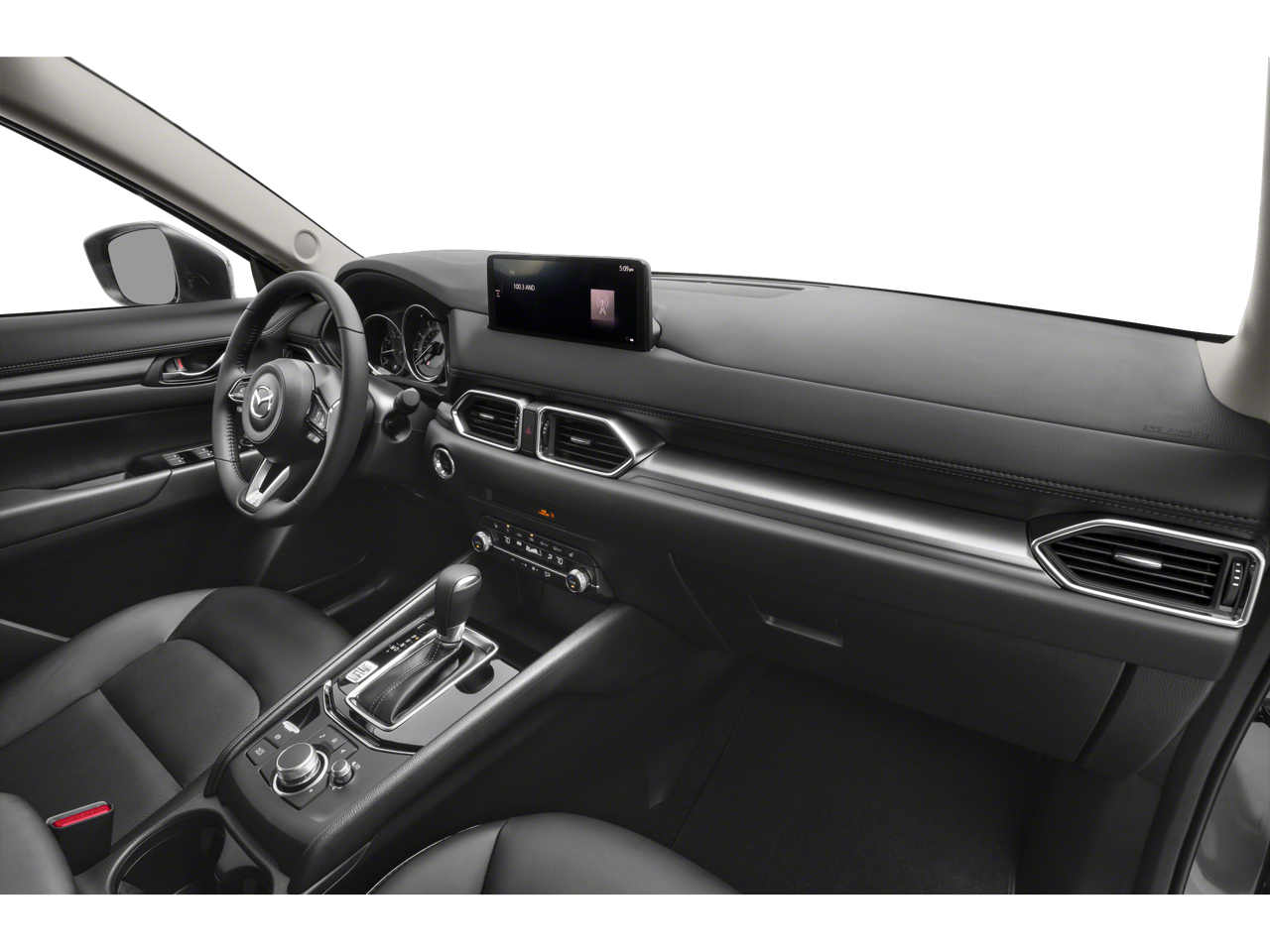 Equipped with 4-Wheel Disc Brakes, 6 Speakers, ABS brakes, Air Conditioning, Alloy wheels, AM/FM radio, AppLink/Apple CarPlay and Android Auto, Auto High-beam Headlights, Automatic temperature control, Brake assist, Bumpers: body-color, Delay-off headlights, Driver door bin, Driver vanity mirror, Dual front impact airbags, Dual front side impact airbags, E911 Automatic Emergency Notification, Electronic Stability Control, Emergency communication system: MAZDA CONNECT, Exterior Parking Camera Rear, Four wheel independent suspension, Front anti-roll bar, Front Bucket Seats, Front Center Armrest w/Storage, Front dual zone A/C, Front reading lights, Fully automatic headlights, Heated Front Bucket Seats, Heated front seats, Illuminated entry, Infotainment System Voice Command, Leather Shift Knob, Leather steering wheel, Leatherette Seat Trim, Low tire pressure warning, Machine Gray Metallic Paint, Multifunction Commander Control, Occupant sensing airbag, Outside temperature display, Overhead airbag, Overhead console, Pandora, Panic alarm, Passenger door bin, Passenger vanity mirror, Power door mirrors, Power driver seat, Power steering, Power windows, Radio Broadcast Data System Program Information, Radio data system, Radio: AM/FM/HD Audio System, Rain sensing wipers, Rear anti-roll bar, Rear reading lights, Rear seat center armrest, Rear window defroster, Rear window wiper, Remote keyless entry, Retractable Cargo Cover, SMS Text Msg Audio Delivery & Reply, Speed control, Speed-sensing steering, Split folding rear seat, Spoiler, Steering wheel mounted audio controls, Tachometer, Telescoping steering wheel, Tilt steering wheel, Traction control, Trip computer, Turn signal indicator mirrors, Variably intermittent wipers, Wheel Locks, and Wheels: 17 x 7J Aluminum Alloy.