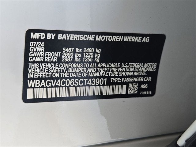 Equipped with Comfort Seating Package (Front & Rear Heated Seats and Front Ventilated Seats), Connected Package Pro, Driving Assistance Package (Active Blind Spot Detection, Active Driving Assistant, Active Park Distance Control, Parking Assistant Plus, Rear-View Camera, and Surround View w/3D View), Driving Assistance Professional Package (Active Driving Assistant Pro and Extended Traffic Jam Assistant), M Sport Package Pro, M Sport Professional Package (Extended Shadowline Trim, M Shadowline Lights, and M Sport Brakes w/Black Calipers), AWD, 16 Speakers, 4-Wheel Disc Brakes, ABS brakes, Air Conditioning, Alloy wheels, AM/FM radio: SiriusXM, Anthracite Alcantara Headliner, Apple CarPlay & Android Auto Compatibility, Auto High-beam Headlights, Auto tilt-away steering wheel, Auto-dimming door mirrors, Auto-dimming Rear-View mirror, Automatic temperature control, BMW Assist eCall, BMW TeleServices, Bowers & Wilkins Diamond Surround Sound System, Brake assist, Bumpers: body-color, ConnectedDrive Services, Delay-off headlights, Driver door bin, Driver vanity mirror, Dual front impact airbags, Dual front side impact airbags, Electronic Stability Control, Emergency communication system: BMW Assist eCall, Enhanced USB & Bluetooth®, Extended Merino Leather Upholstery, Exterior Parking Camera Rear, Four wheel independent suspension, Front anti-roll bar, Front Bucket Seats, Front Center Armrest, Front dual zone A/C, Front reading lights, Fully automatic headlights, Garage door transmitter, Glass Controls, harman/kardon Surround Sound System, harman/kardon® Speakers, Heads-Up Display, Heated door mirrors, Heated front seats, Heated Front Seats, Armrests & Steering Wheel, Heated steering wheel, Illuminated entry, Increased Top Speed Limiter, Leather Shift Knob, Leather steering wheel, Live Cockpit Pro w/Navi, Low tire pressure warning, Memory seat, Multi-Functional Seats, Navigation System, Occupant sensing airbag, Outside temperature display, Overhead airbag, Panic alarm, Passenger door bin, Passenger vanity mirror, Power door mirrors, Power driver seat, Power moonroof: Panoramic, Power passenger seat, Power steering, Power windows, Radio data system, Radio: AM/FM Audio System, Rain sensing wipers, Rear air conditioning, Rear anti-roll bar, Rear dual zone A/C, Rear Window Blind, Rear window defroster, Remote keyless entry, Security system, SiriusXM Satellite Radio w/1 Year Subscription, Speed control, Speed-sensing steering, Speed-Sensitive Wipers, Split folding rear seat, Sport steering wheel, Steering wheel memory, Steering wheel mounted audio controls, Tachometer, Telescoping steering wheel, Tilt steering wheel, Traction control, Trip computer, Turn signal indicator mirrors, Variably intermittent wipers, Wheels: 20 x 8 Fr & 20 x 9 Rr Dual-Spoke, and WiFi Hotspot.