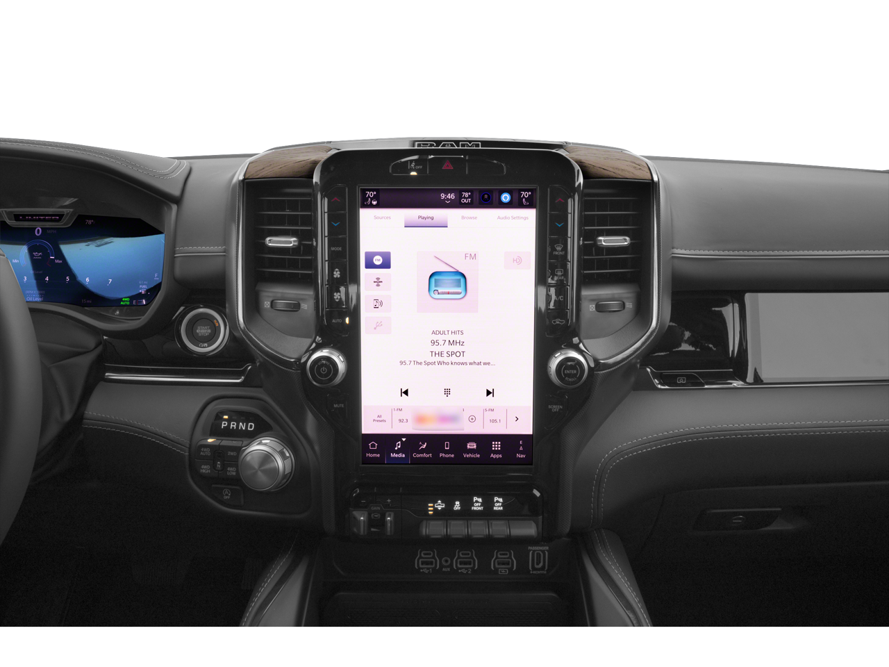 Equipped with Quick Order Package 22M Limited, 4WD, Dome Dual LED Reading Lamp, Dual-Pane Panoramic Sunroof, LED Dome/Reading Lamp, 19 Speakers, 3.92 Rear Axle Ratio, 4-Wheel Disc Brakes, 4G LTE Wi-Fi Hot Spot, ABS brakes, Adjustable pedals, Air Conditioning, Alloy wheels, AM/FM radio: SiriusXM with 360L, Apple CarPlay, Apple CarPlay/Android Auto, Audio memory, Auto High-beam Headlights, Auto Power-Folding Mirrors, Auto-dimming door mirrors, Auto-Dimming Exterior Driver Mirror, Auto-dimming Rear-View mirror, Auto-leveling suspension, Automatic temperature control, Bodyside moldings, Brake assist, Bumpers: chrome, Chrome Exterior Mirrors, Compass, Connected Travel & Traffic Services, Connectivity - US/Canada, Convex Wide-Angle Exterior Mirror Insert, Delay-off headlights, Driver door bin, Driver vanity mirror, Dual front impact airbags, Dual front side impact airbags, Electronic Stability Control, Exterior 115V AC Outlet, Exterior Mirrors Courtesy Lamps, Exterior Mirrors w/Heating Element, Exterior Mirrors w/Memory, Exterior Mirrors w/Supplemental Signals, Front anti-roll bar, Front Bucket Seats, Front Center Armrest w/Storage, Front dual zone A/C, Front fog lights, Front License Plate Bracket, Front reading lights, Front wheel independent suspension, Fully automatic headlights, Garage door transmitter, Genuine wood console insert, Genuine wood dashboard insert, Genuine wood door panel insert, Google Android Auto, GPS Antenna Input, GPS Navigation, harman/kardon® Speakers, HD Radio, Heated door mirrors, Heated front seats, Heated rear seats, Heated steering wheel, Illuminated entry, Integrated Voice Command w/Bluetooth®, Leather steering wheel, Low tire pressure warning, Manufacturer's Statement of Origin, Memory seat, Navigation System, Occupant sensing airbag, Outside temperature display, Overhead airbag, Overhead console, Panic alarm, ParkView Rear Back-Up Camera, Passenger door bin, Passenger vanity mirror, Pedal memory, Power door mirrors, Power driver seat, Power passenger seat, Power steering, Power windows, Premium Quilted Leather Bucket Seats, Radio data system, Radio: Uconnect 5 Nav w/12.0 Display, Rain sensing wipers, Rear anti-roll bar, Rear reading lights, Rear seat center armrest, Rear step bumper, Rear window defroster, Remote keyless entry, Security system, SiriusXM w/360L, Speed control, Split folding rear seat, Steering wheel mounted audio controls, Tachometer, Telescoping steering wheel, Tilt steering wheel, Traction control, Trailer Brake Control, Trip computer, Turn signal indicator mirrors, USB Host Flip, Variably intermittent wipers, Ventilated front seats, Ventilated rear seats, Voltmeter, and Wheels: 20 x 9 Premium Paint/Polished.