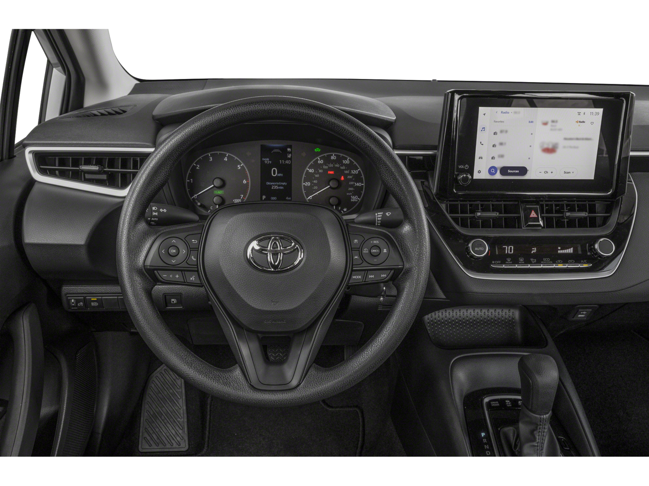 Equipped with 1.8L DOHC 16V VVT, 4-Wheel Disc Brakes, 6 Speakers, ABS brakes, Air Conditioning, AM/FM radio: SiriusXM, Apple CarPlay/Android Auto, Auto High-beam Headlights, Automatic temperature control, Brake assist, Bumpers: body-color, Delay-off headlights, Driver door bin, Driver vanity mirror, Dual front impact airbags, Dual front side impact airbags, Electronic Stability Control, Emergency communication system: Safety Connect (up to 10-year trial subscription), Exterior Parking Camera Rear, Four wheel independent suspension, Front anti-roll bar, Front Bucket Seats, Front Center Armrest, Front reading lights, Fully automatic headlights, Illuminated entry, Knee airbag, Low tire pressure warning, Occupant sensing airbag, Outside temperature display, Overhead airbag, Panic alarm, Passenger door bin, Passenger vanity mirror, Power door mirrors, Power steering, Power windows, Premium Fabric Seat Trim, Radio data system, Radio: 8 Toyota Audio Multimedia, Rear anti-roll bar, Rear seat center armrest, Rear side impact airbag, Rear window defroster, Remote keyless entry, Speed control, Split folding rear seat, Steering wheel mounted audio controls, Tachometer, Telescoping steering wheel, Tilt steering wheel, Traction control, Trip computer, and Wheels: 16 Wide Vent Steel.