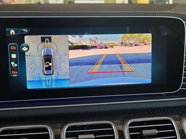 Equipped with 13 Speakers, 21 AMG® Twin 5-Spoke Wheels, 4-Wheel Disc Brakes, ABS brakes, Adaptive suspension, Air Conditioning, Alloy wheels, AM/FM radio: SiriusXM, Anti-whiplash front head restraints, Apple CarPlay®/Android Auto®, Auto High-beam Headlights, Auto tilt-away steering wheel, Auto-dimming door mirrors, Auto-dimming Rear-View mirror, Auto-leveling suspension, Automatic temperature control, Brake assist, Brushed Aluminum Trim, Bumpers: body-color, Burmester® Surround Sound System, Compass, Delay-off headlights, Driver door bin, Driver vanity mirror, Dual front impact airbags, Dual front side impact airbags, Electronic Stability Control, Emergency communication system: eCall Emergency System, Exterior Parking Camera Rear, Four wheel independent suspension, Front anti-roll bar, Front Bucket Seats, Front Center Armrest, Front dual zone A/C, Front reading lights, Fully automatic headlights, Garage door transmitter: HomeLink, Heads-Up Display, Heated and Ventilated Power Front Seats with Memory, Heated door mirrors, Heated front seats, Heated steering wheel, Illuminated entry, Knee airbag, Low tire pressure warning, Memory seat, Nappa Leather Dashboard and Door Panels, Navigation system: MBUX, Occupant sensing airbag, Outside temperature display, Overhead airbag, Panic alarm, Passenger door bin, Passenger vanity mirror, Power adjustable front head restraints, Power door mirrors, Power driver seat, Power Liftgate, Power moonroof: Panorama, Power passenger seat, Power steering, Power windows, Pre-Installation For Online Music Streaming, Premium audio system: MBUX, Radio data system, Radio: 12.3 Media Display with Touchscreen, Rain sensing wipers, Rapid Heating Functionality For Front Seats, Rear anti-roll bar, Rear fog lights, Rear reading lights, Rear seat center armrest, Rear window defroster, Rear window wiper, Remote keyless entry, Security system, Sound Personalization, Speed control, Speed-sensing steering, Speed-Sensitive Wipers, Split folding rear seat, Spoiler, Sport steering wheel, Steering wheel memory, Steering wheel mounted audio controls, Tachometer, Telescoping steering wheel, Tilt steering wheel, Traction control, Trip computer, Turn signal indicator mirrors, Ventilated front seats, and Weather band radio.